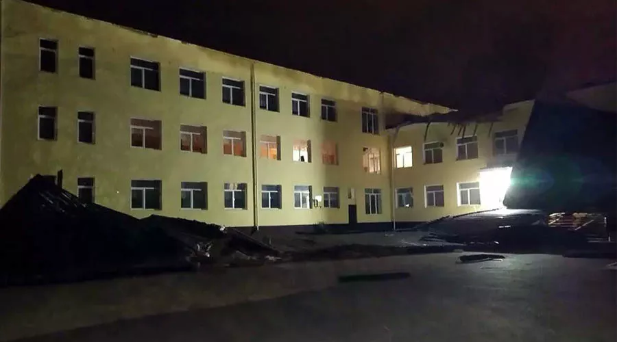 В крымском городе Джанкое 21 ноября сильный ветер сорвал часть крыши со школы
