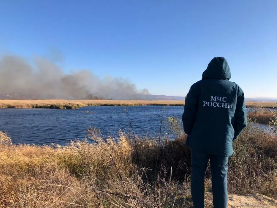 Утром 23 ноября в Анапе спасатели возобновили тушение пожара в плавнях