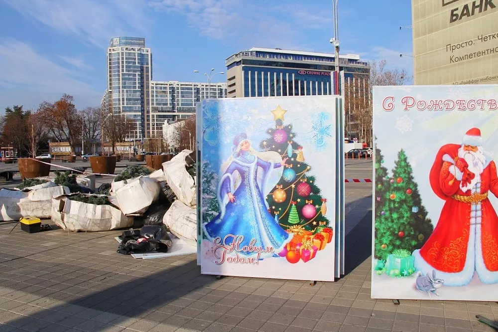 На Главной городской площади Краснодара 25 ноября начали собирать главную елку города