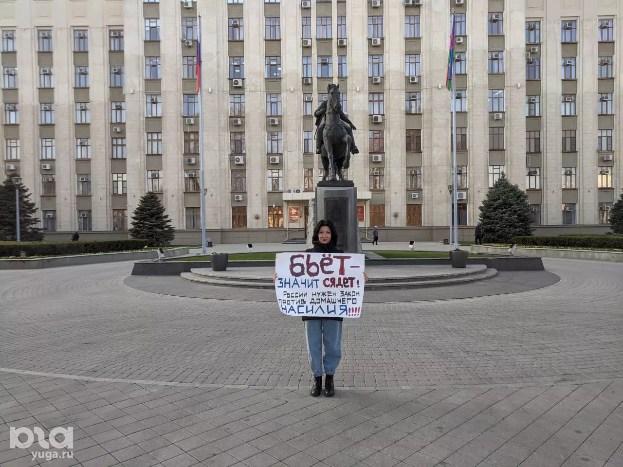«Сегодня в Москве пройдет наконец-то согласованный митинг за закон о домашнем насилии в России. Мы поддерживаем принятие этого закона одиночным пикетом в Краснодаре. Считаю, что это очень правильно, нужно и важно, чтобы нас увидели и услышали. Такой закон действительно нужен каждой из нас», — прокомментировала девушка.