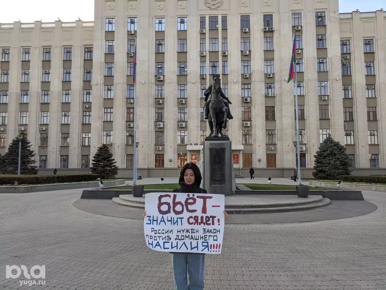 Возле здания краевой администрации 25 ноября жительница Краснодара вышла на одиночный пикет против домашнего насилия