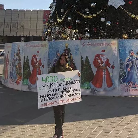 5 декабря краснодарка Надежда Сазанова вышла на одиночный пикет на Главную городскую площадь. На плакате, который она держала в руках, было написано «4000 человек с муковисцидозом хотят жить. Нам нужны эффективные и безопасные лекарства».