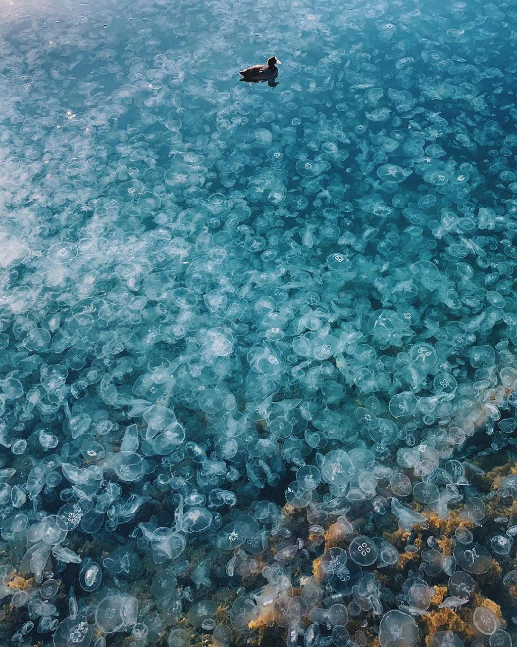 Фотографии и видео с тысячами медуз, скопившихся у берегов бухты в Балаклаве, появились в соцсетях.