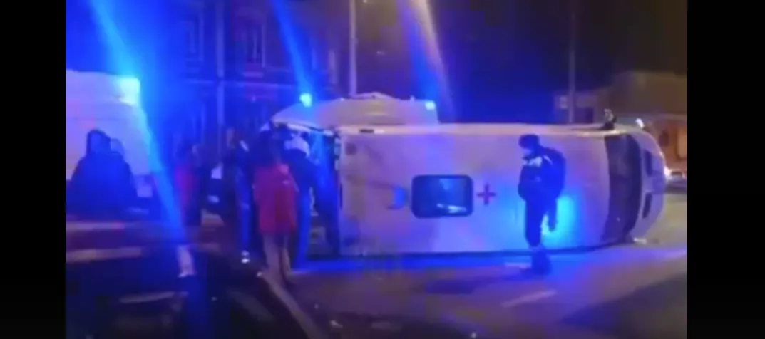 Первое ДТП случилось около 6:00. Водитель неотложки со включенной сиреной и маячками двигалась по улице Северной и на красный сигнал светофора выехал на перекресток с Седина, не убедившись, что его пропускают. В этот момент скорую протаранило такси. От удара спецмашина перевернулась на бок.