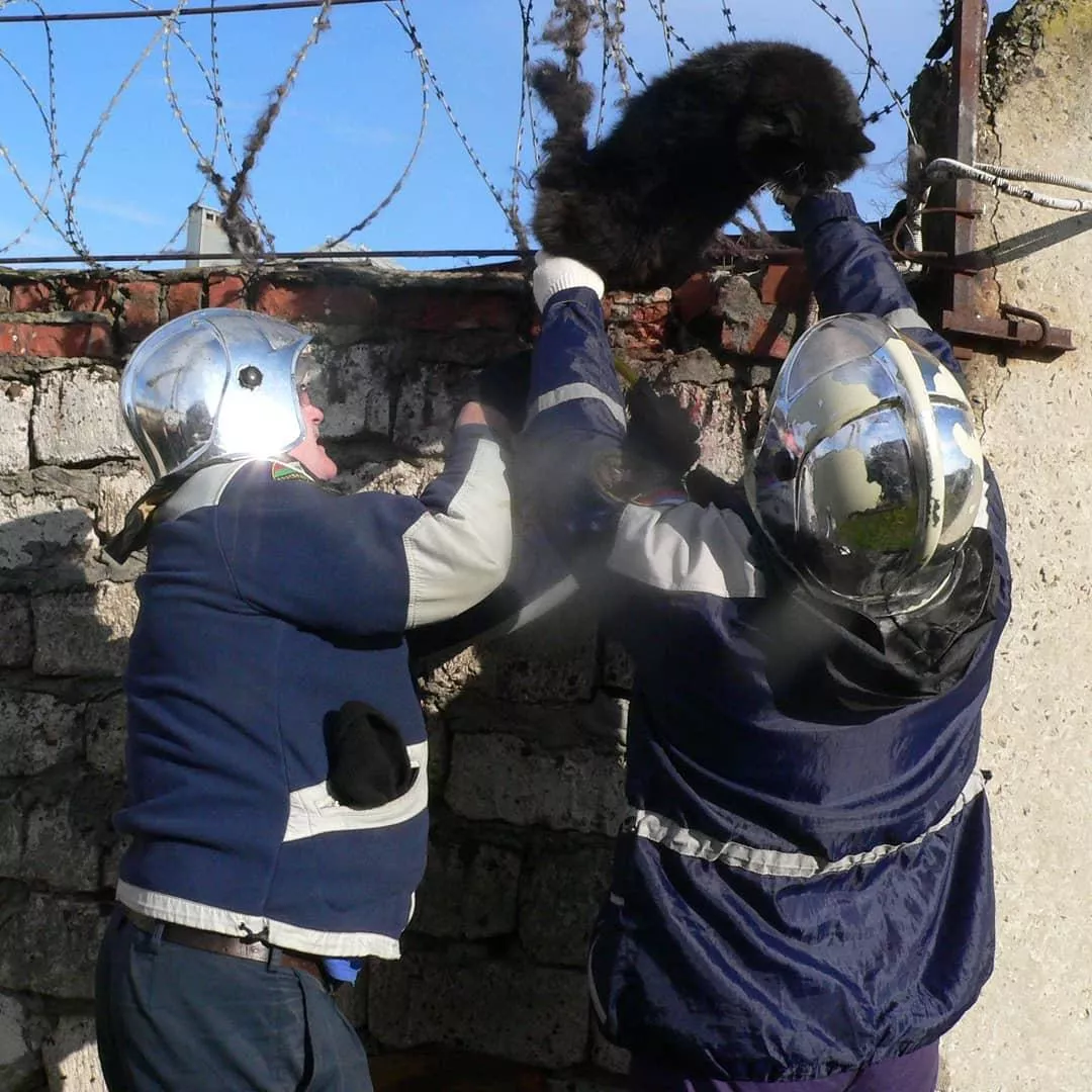В Лабинске в январе спасатели вытащили кота, застрявшего в колючей проволоке