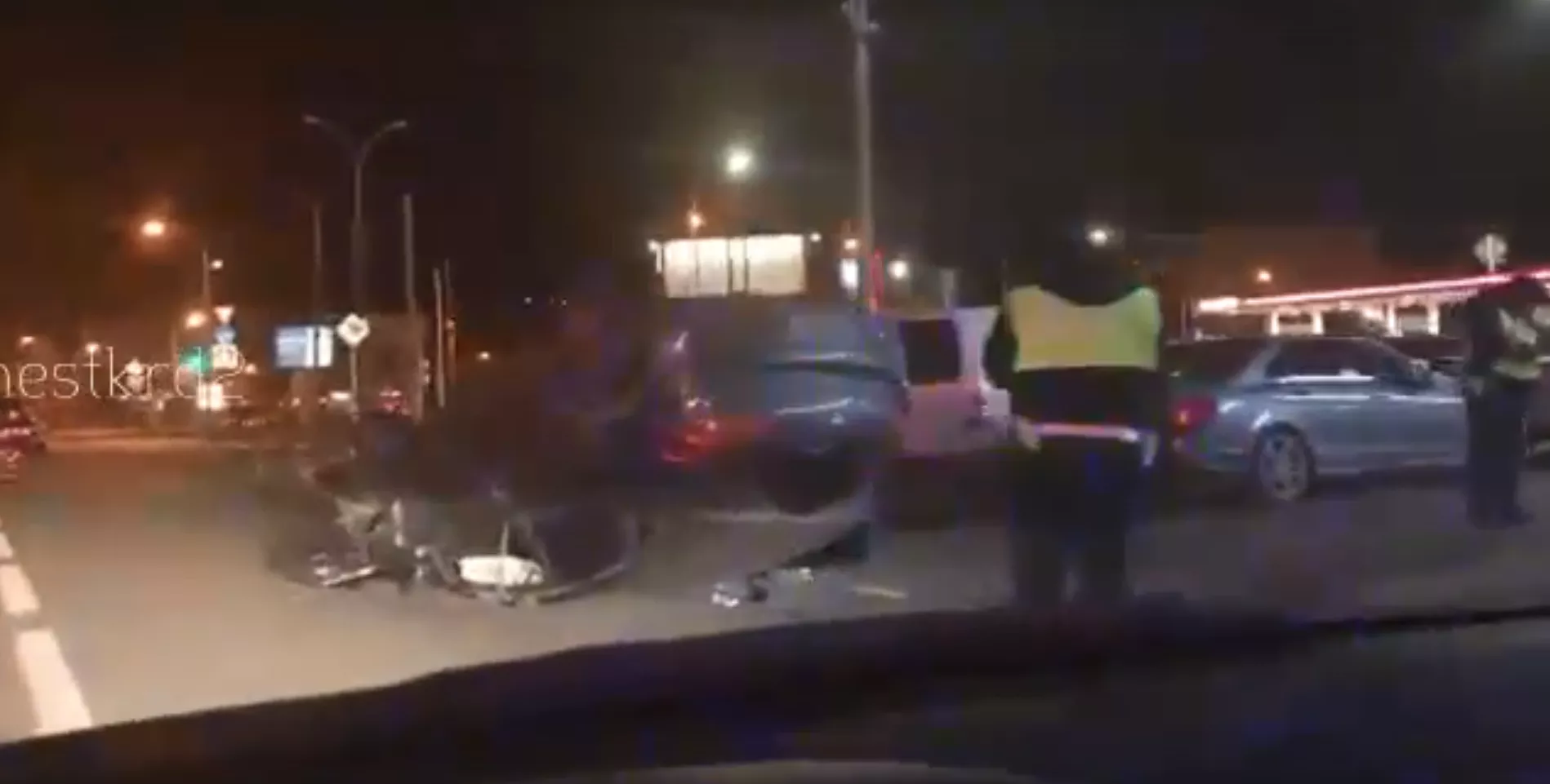 В Краснодаре в ночь на 16 января произошло ДТП с тремя машинами, одна из которых перевернулась
