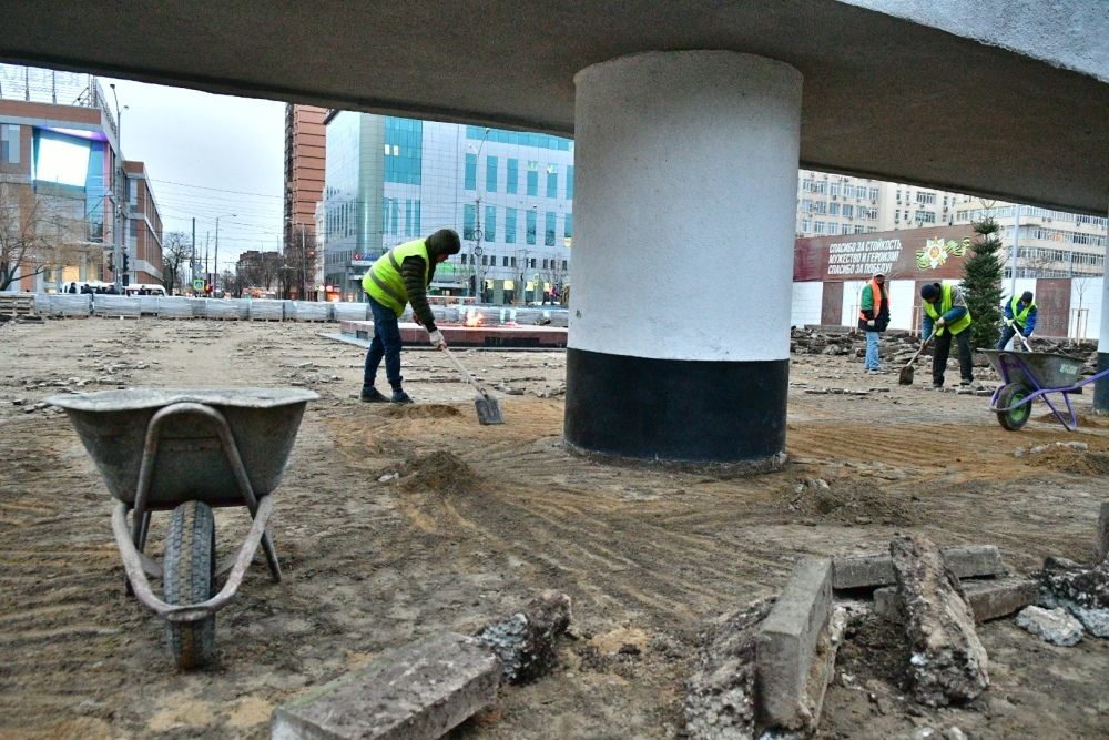 Капитальный ремонт начали 9 января, завершить его рассчитывают в конце апреля. Сейчас заканчивается демонтаж 1,5 тыс. кв. метров тротуарной плитки, вместо нее положат гранитную. В пресс-службе администрации города отметили, что старую плитку не будут утилизировать, а используют в других местах — часть, например, используют при мощении Крымского сквера на углу улиц Симферопольской и Уральской.