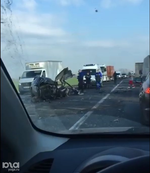 Авария случилась около 11:30 на трассе Краснодар — Кропоткин. По предварительным данным, водитель автомобиля Chevrolet Lanos выехал на встречную полосу и врезался в КамАЗ с прицепом.