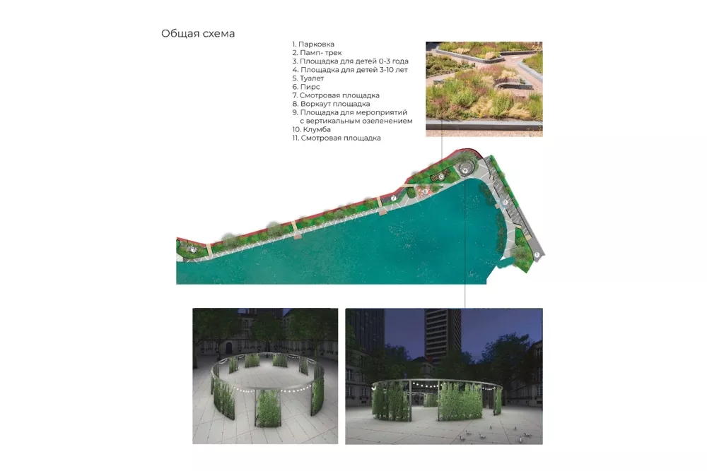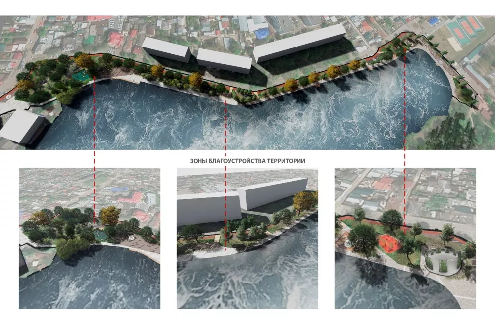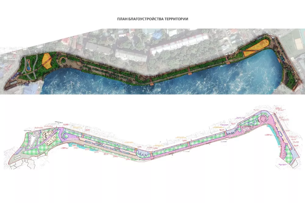 Также на территории вдоль берега планируют создать зону «тихого отдыха». Там хотят сделать террасирование (создание ступеней на склонах) и ремонт подпорных стенок с подсветкой и скамейками. Ожидается, что подход к берегу озера выполнят из деревянного настила.