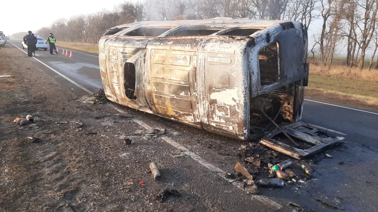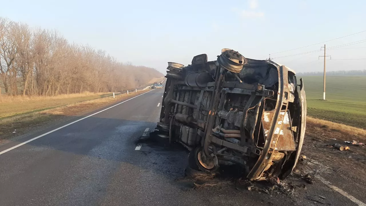 На Кубани на трассе произошел конфликт со стрельбой, после которого перевернулась и загорелась «Газель»