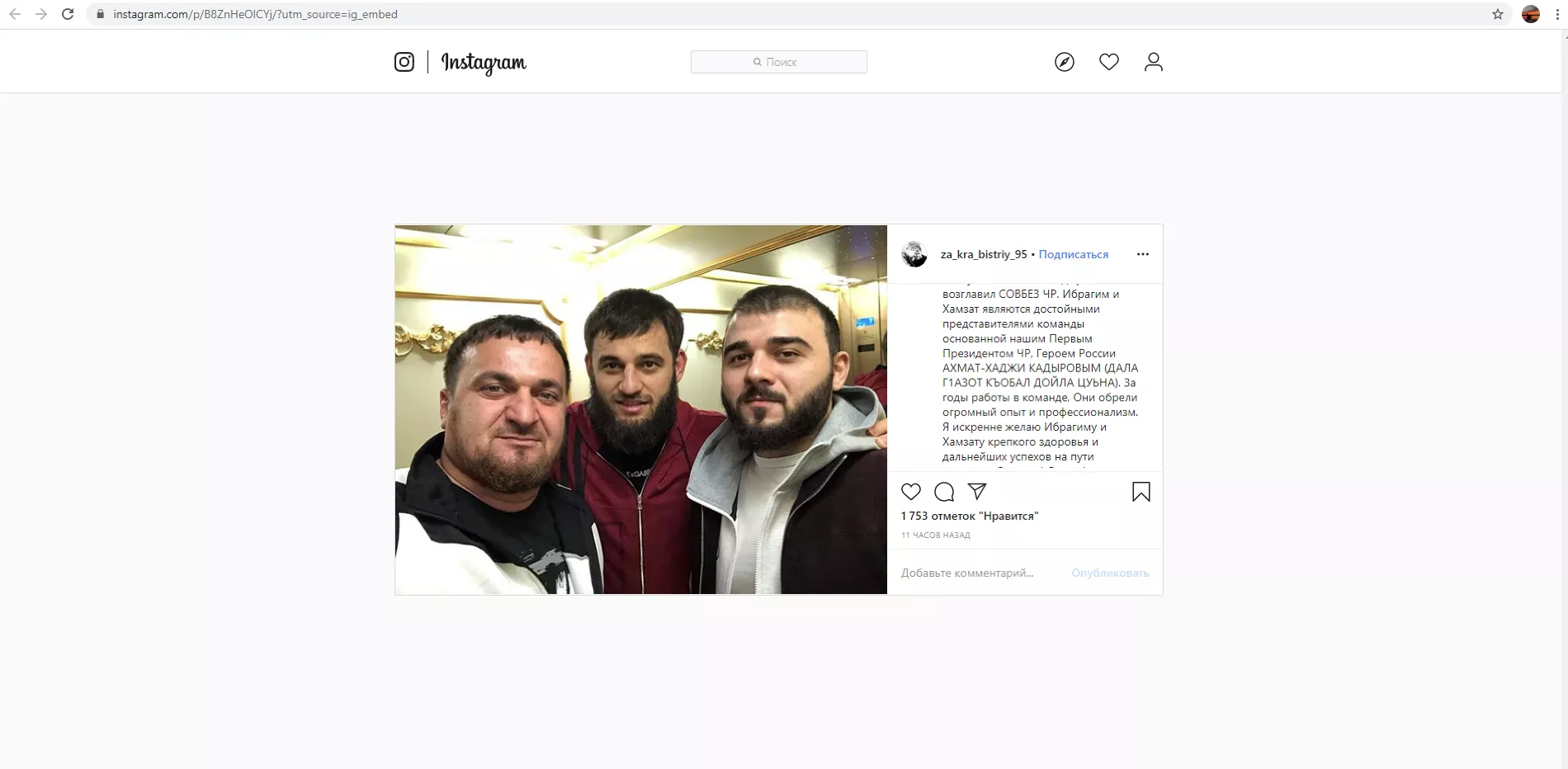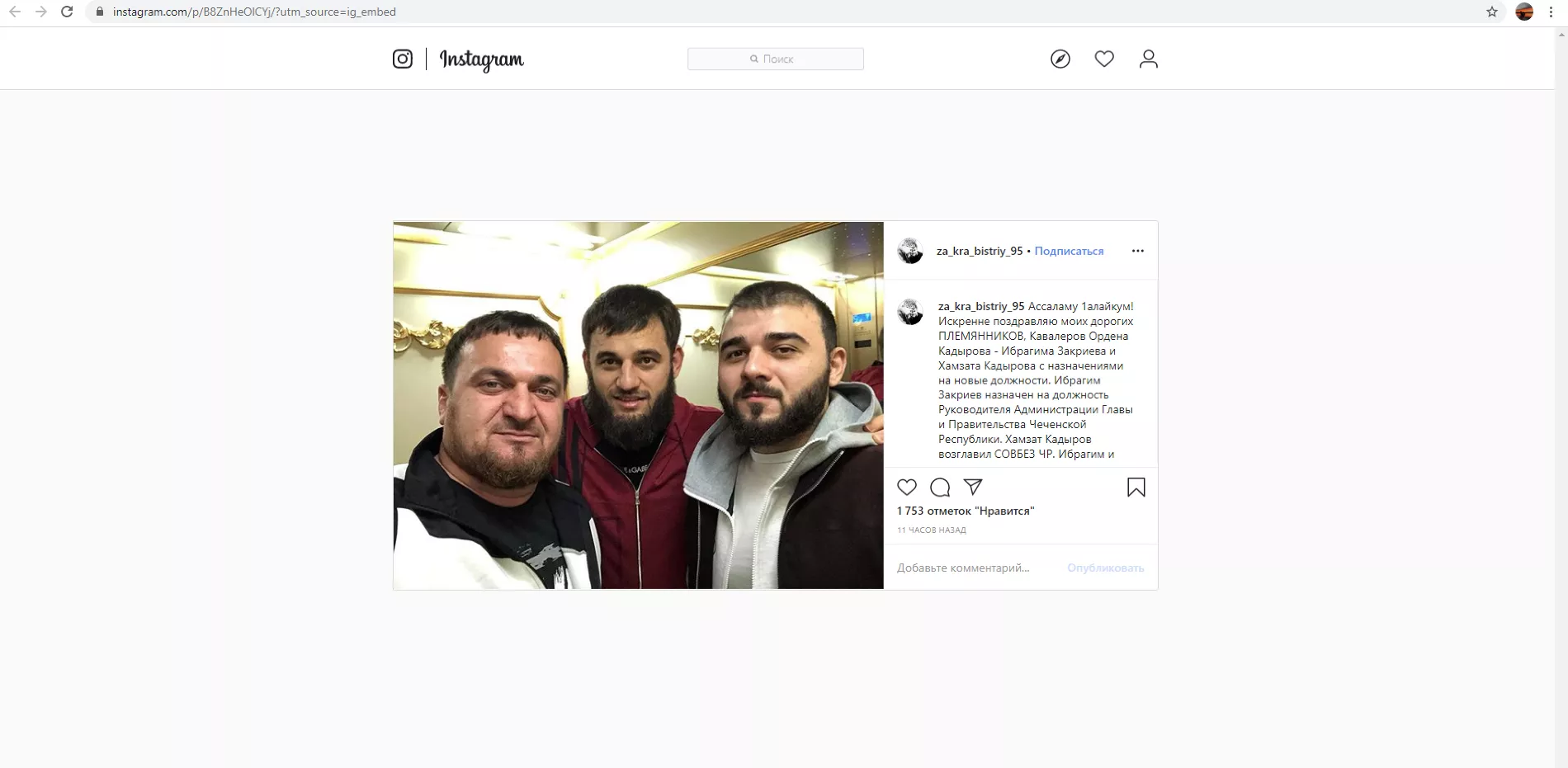 Об этом в своем инстаграме в ночь на 11 февраля написал помощник главы Чечни Рамзана Кадырова и глава администрации Шалинского муниципального района Турпалали Ибрагимов. Также он сообщил о повышении 29-летнего мэра Грозного Ибрагима Закриева — его назначили руководителем администрации главы республики и правительства. Однако на момент публикации пост был удален.