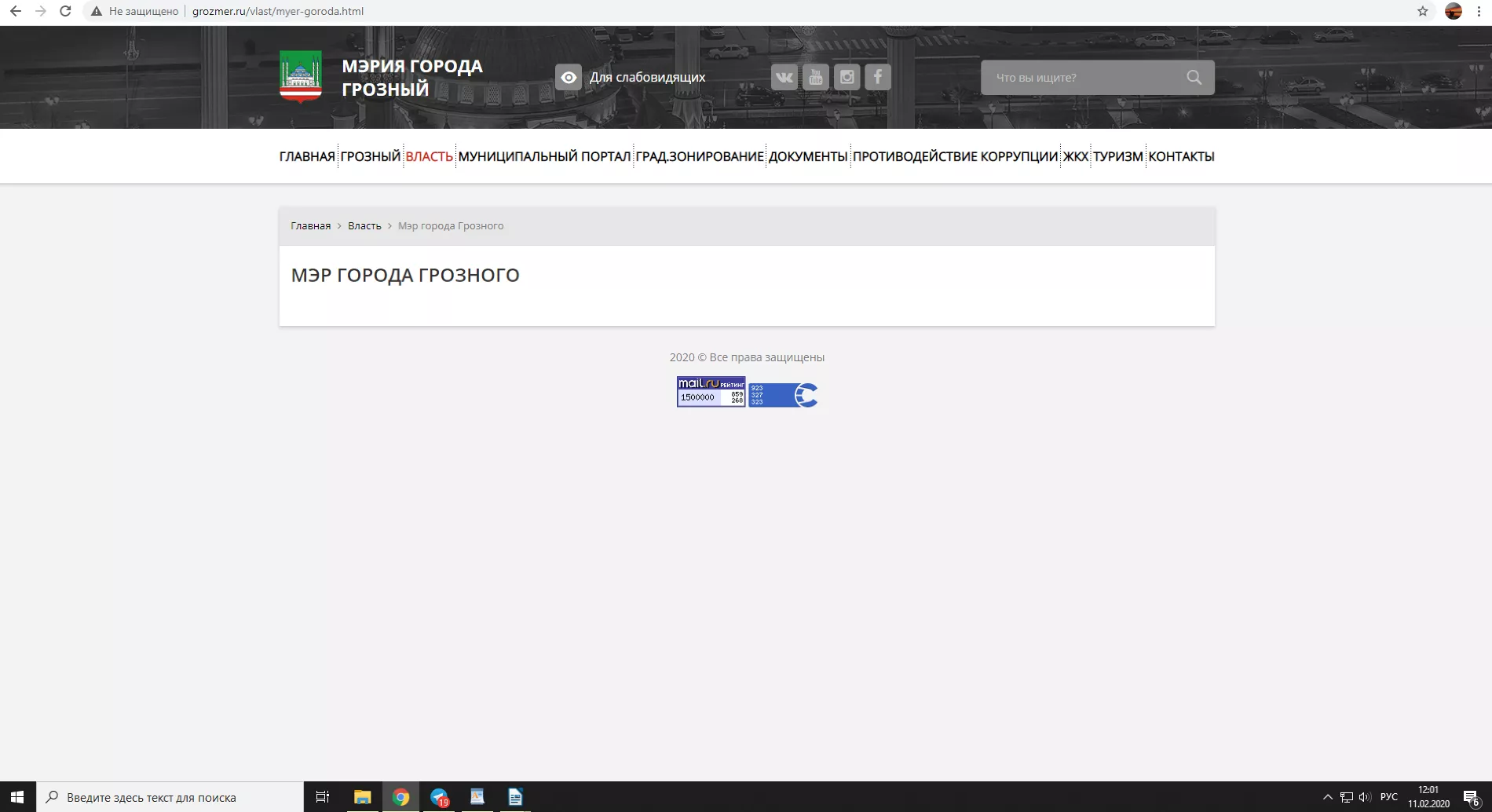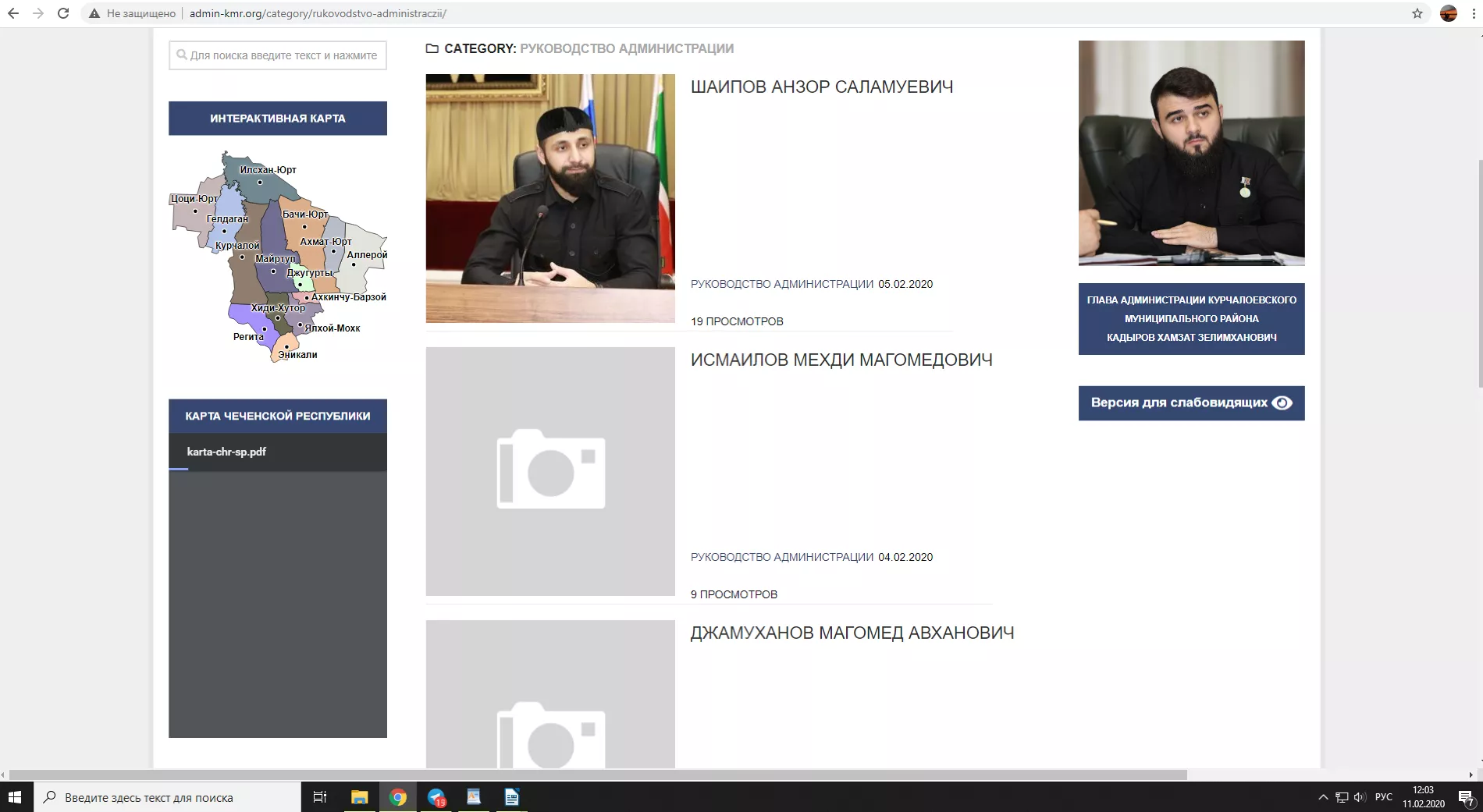 На официальном сайте администрации Грозного в разделе «Мэр Грозного» на 12:00 11 февраля не было никакой информации. При этом на сайте администрации Курчалоевского района главой все еще значится Хамзат Кадыров.