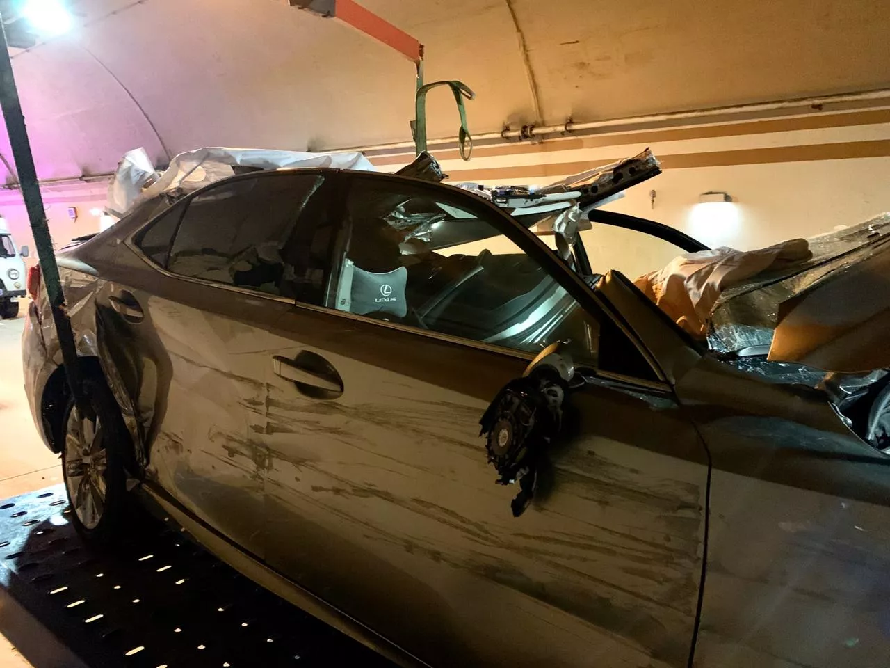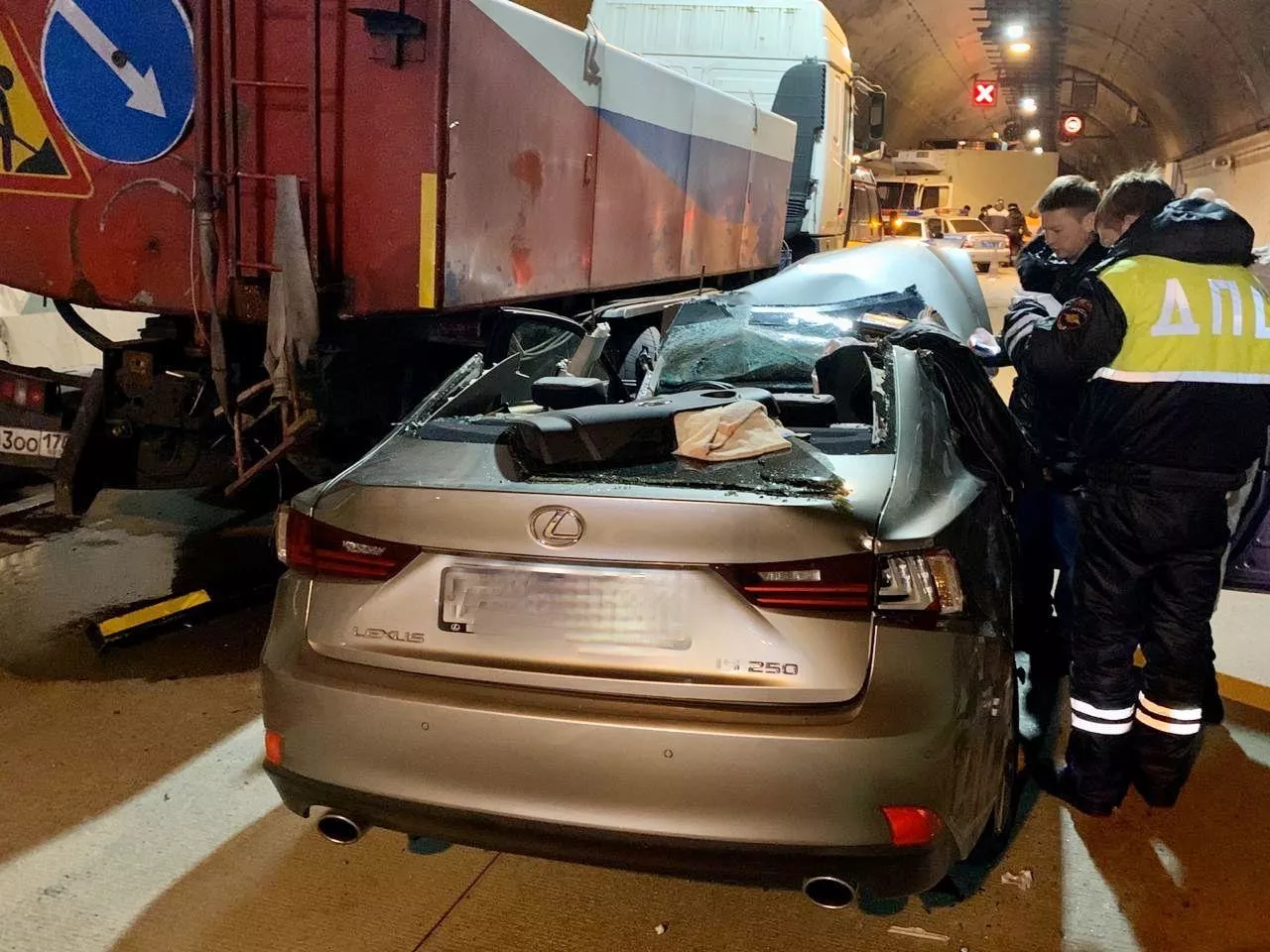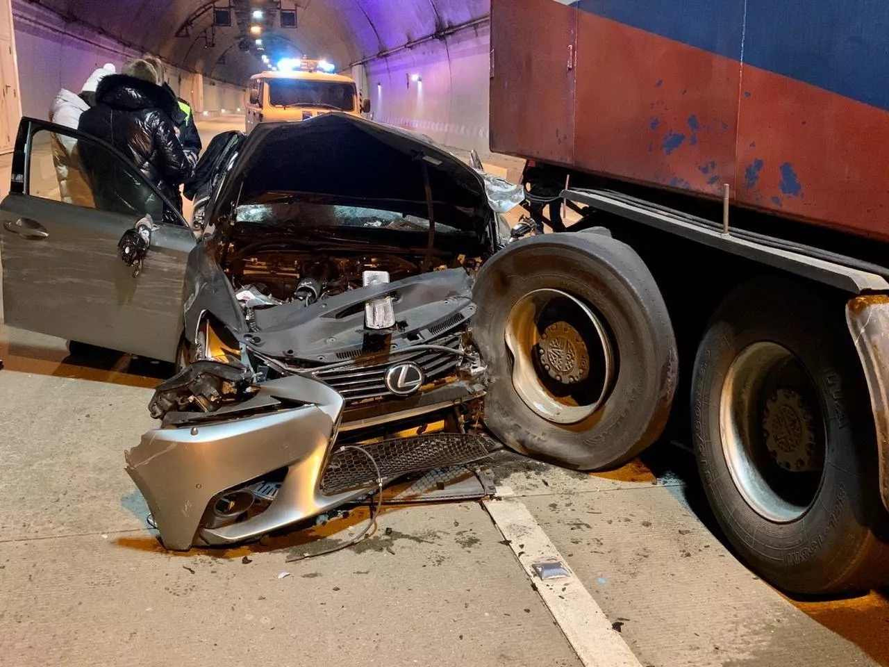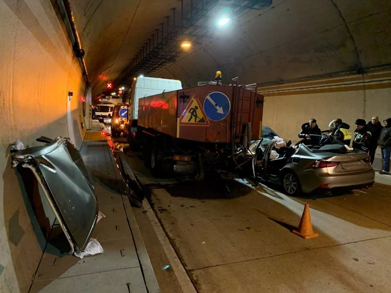 ДТП случилось в 22:50 в тоннеле № 4 на дороге А148. Судя по фотографиям пресс-службы ФКУ Упрдор «Черноморье», на участке столкнулись Lexus и грузовик уборочной службы. В результате аварии погиб один человек.