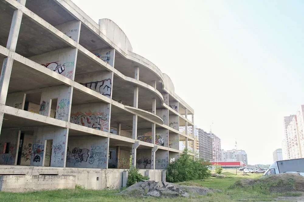 Участок земли на улице Писателя Знаменского, 3 принадлежал Министерству обороны РФ. В 2006 году ведомство начало строить поликлинику, однако спустя четыре года финансирование стройки прекратили. В 2010 году объект заморозили, он оставался не обнесенным забором, без охраны и освещения. В 2016-м мэрия Краснодара в суде попыталась добиться решения о сносе здания, однако суд отказал в удовлетворении иска.