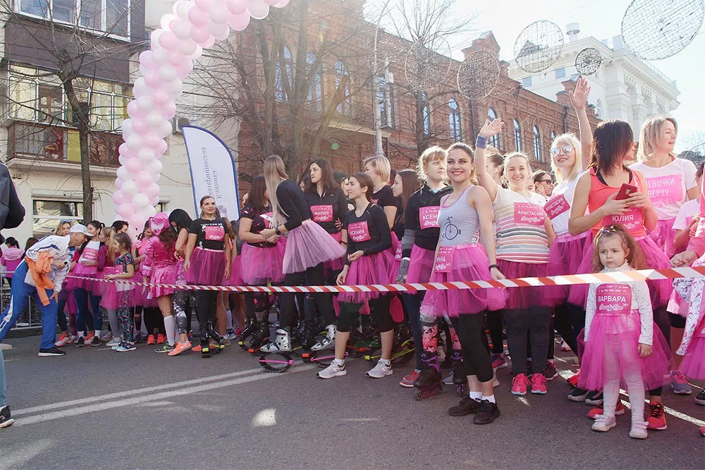 На старте участницам выдали розовую юбку-пачку, а на финише подарили цветы. Первую тройку, пробежавшую дистанцию быстрее всех, наградил генеральный менеджер ПБК «Локомотив-Кубань» Алексей Саврасенко.