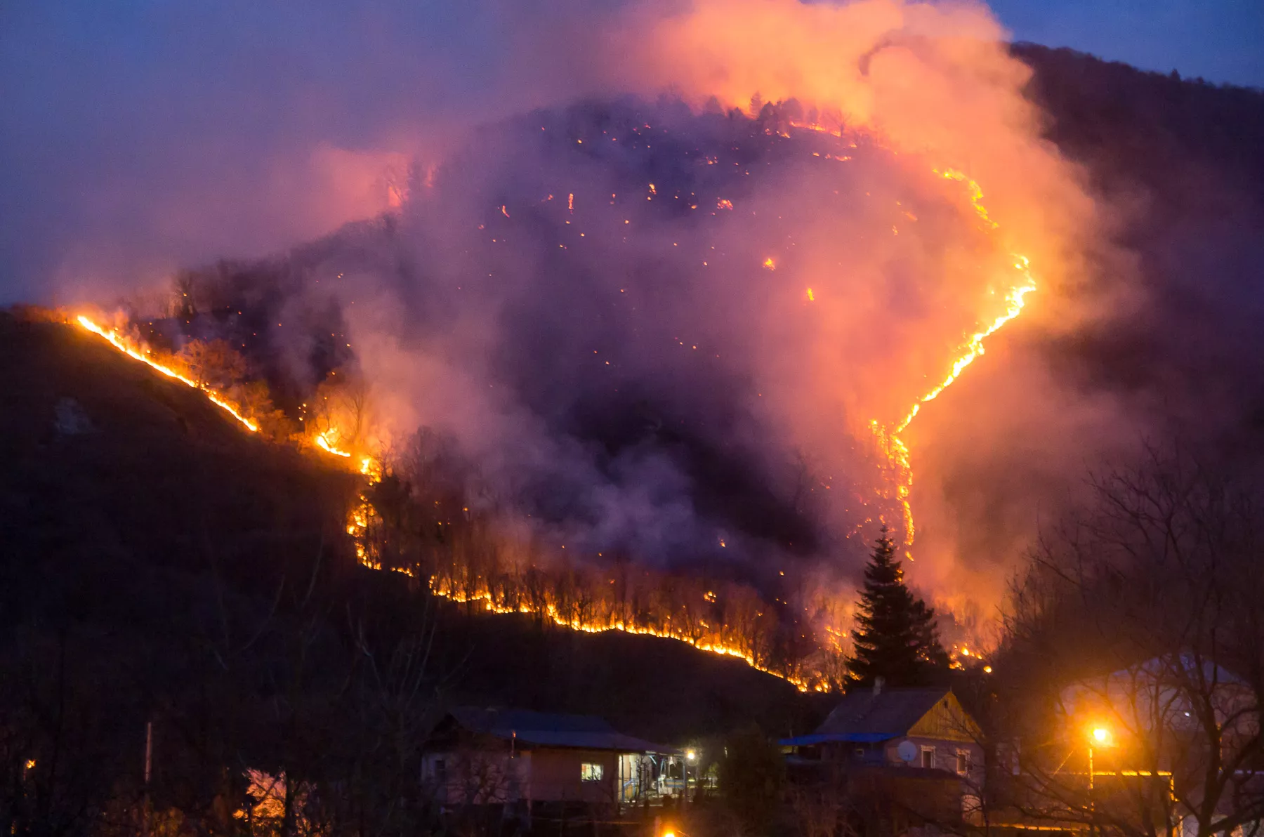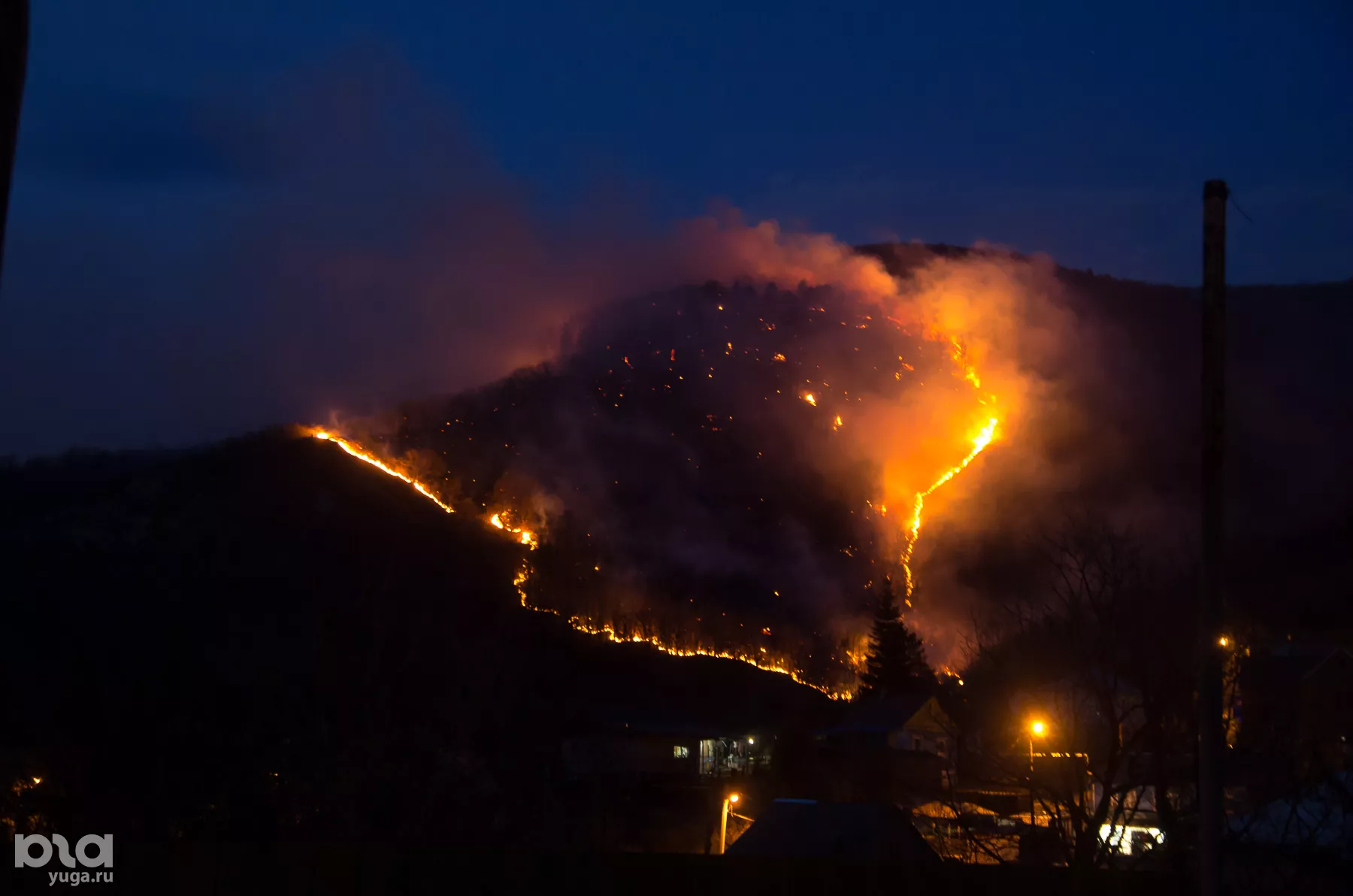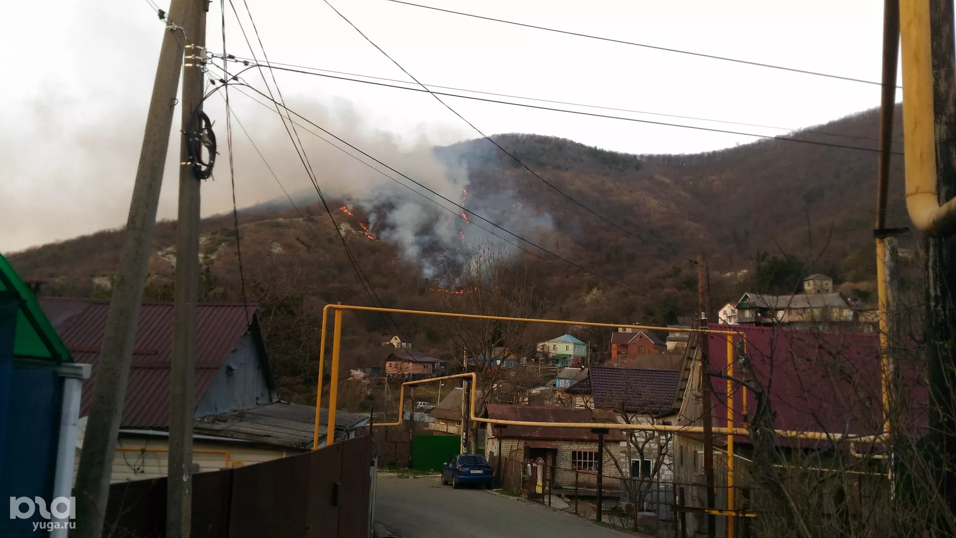 В Туапсе 10 марта произошел крупный пожар на склоне горы в районе нефтеперерабатывающего завода