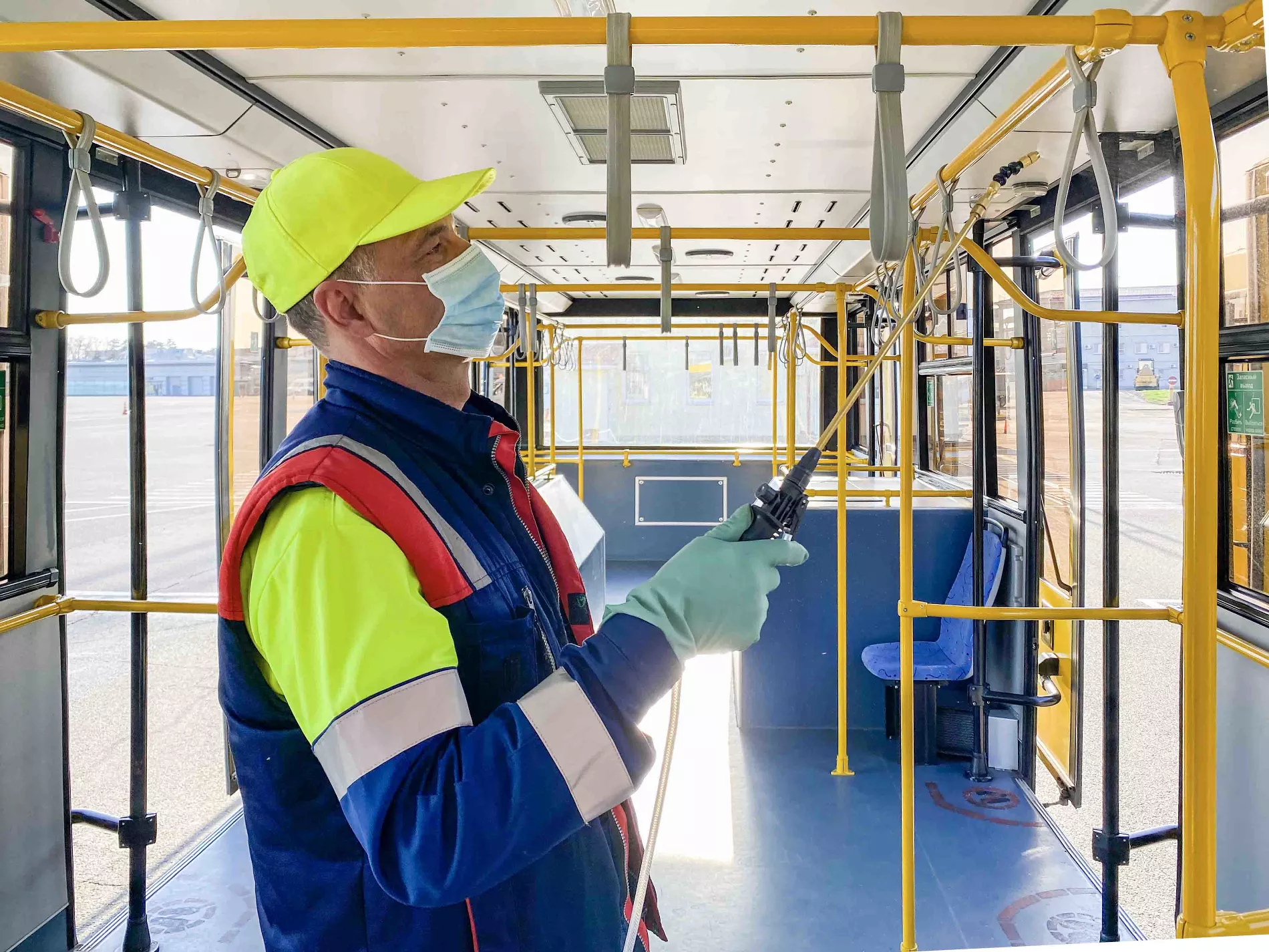 Для дезинфекции транспортных средств по специально разработанной технологии сформировали отдельные бригады с привлечением дополнительного персонала: обрабатываются пассажирские автобусы, трапы, амбулифты.