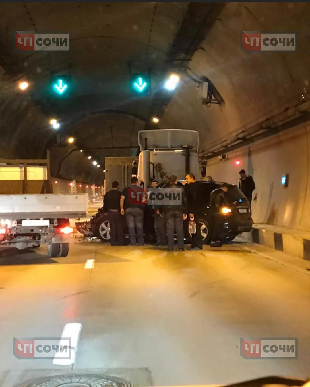 В Сочи 18 марта в тоннеле столкнулись иномарка и два грузовика, есть пострадавший