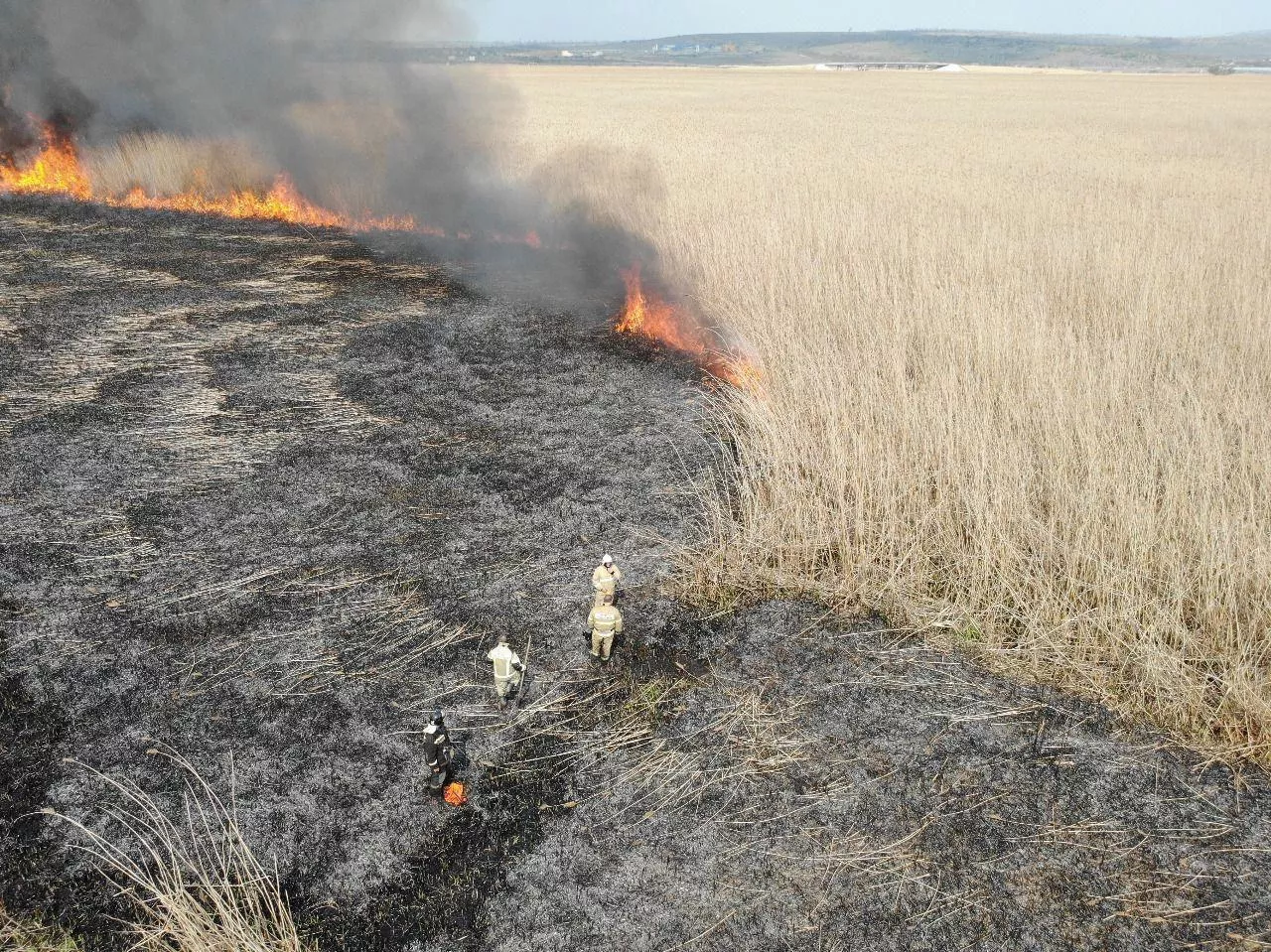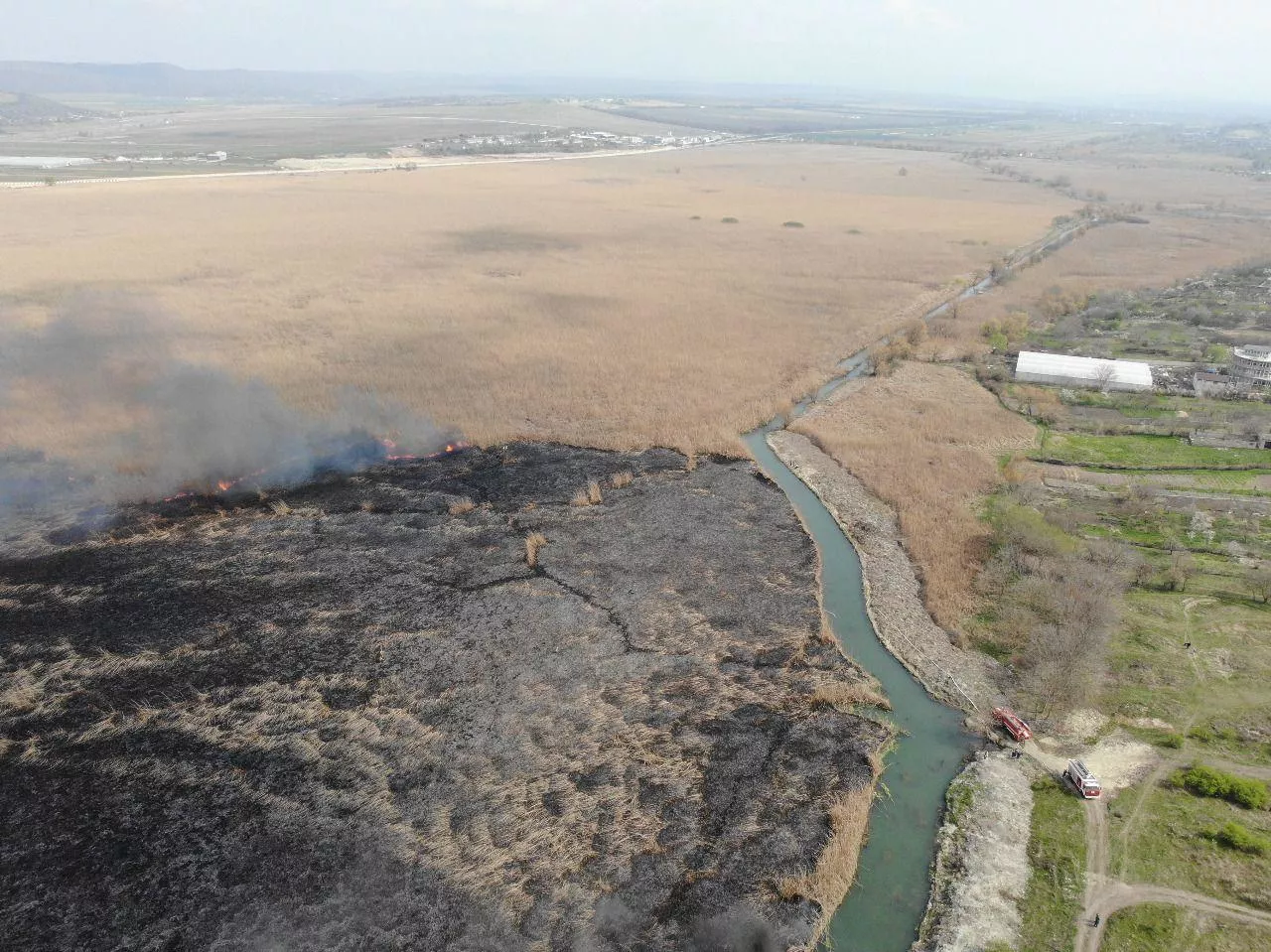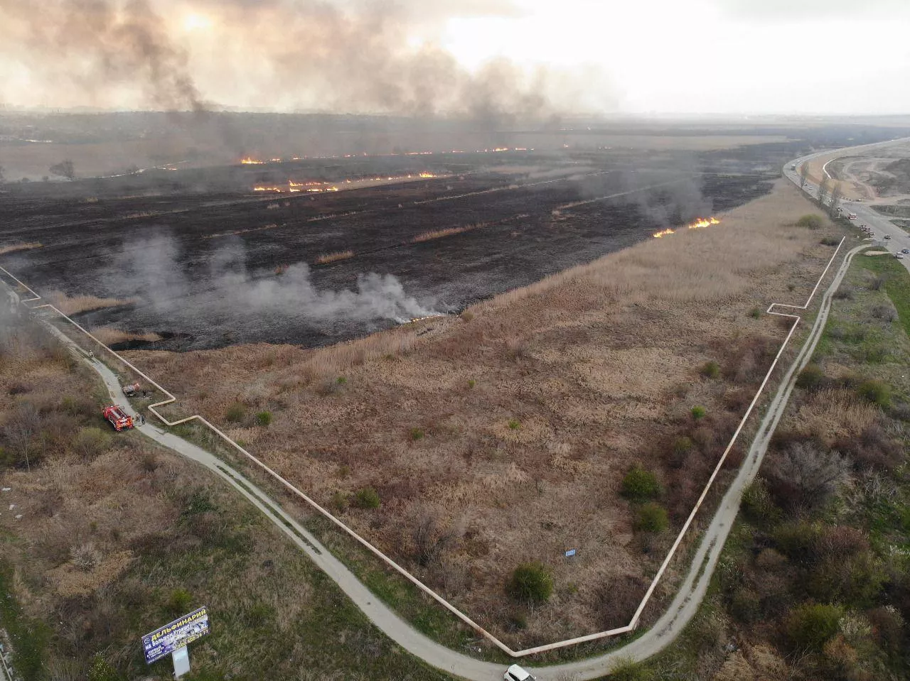 Под Анапой спустя 12 часов потушили крупный пожар в плавнях. Фото и видео с коптера