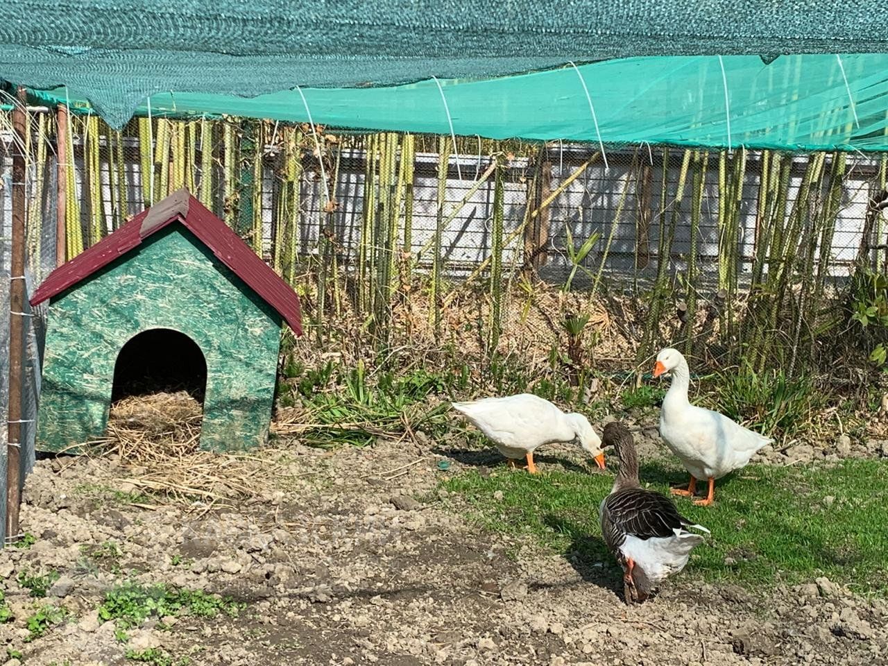 Для того, чтобы конфликт за место между птицами не продолжался, гусиное семейство переселили в специально возведенный на территории хозяйственного двора вольер.