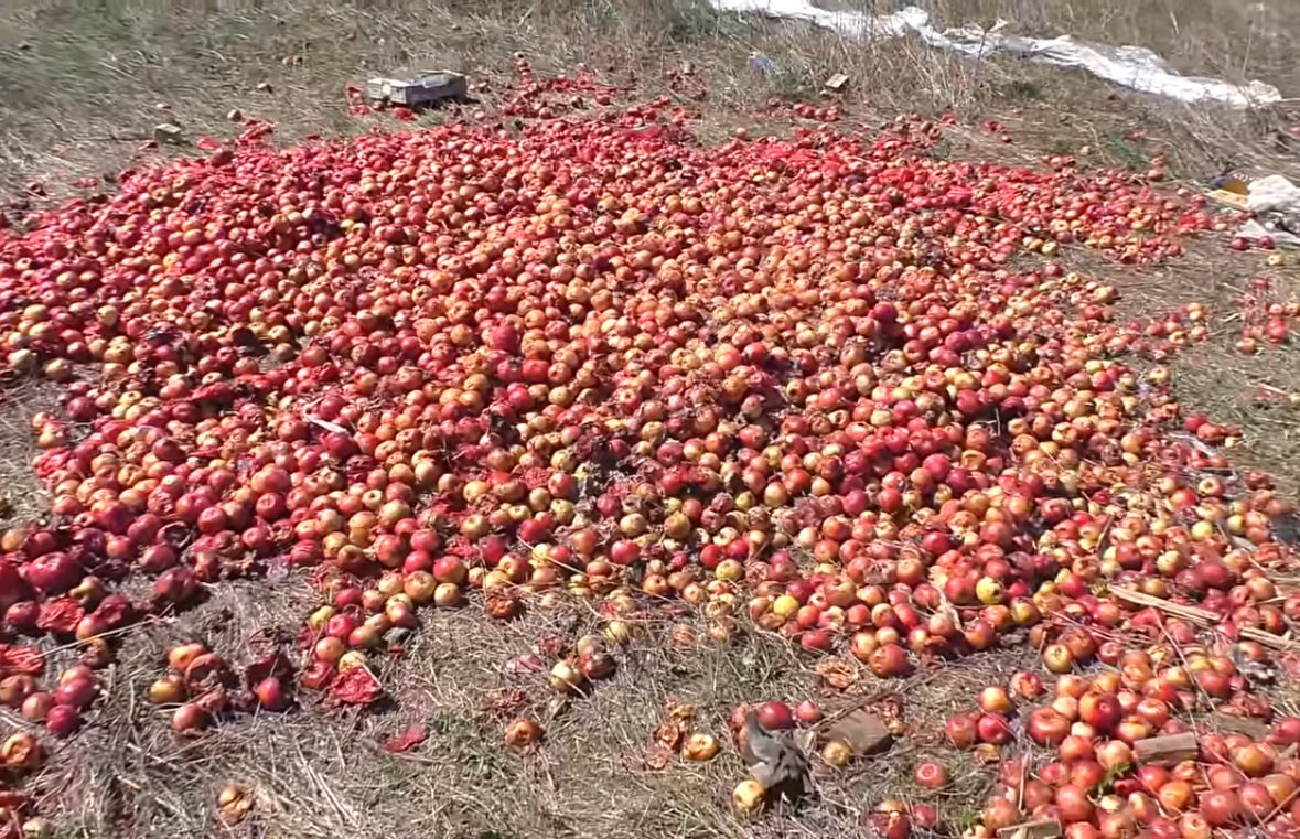 Судя по видео, в одно и то же место под городом свалили помидоры, перцы и яблоки. Фрукты и перец лежали в единой куче, часть помидоров выбросили в цельной упаковке, еще часть — оставили в ящиках. По словам Архипова, красный перец и большинство яблок местные жители уже разобрали. Некоторые оставшиеся продукты сгнили, другие же на момент съемки оставались в свежем состоянии.