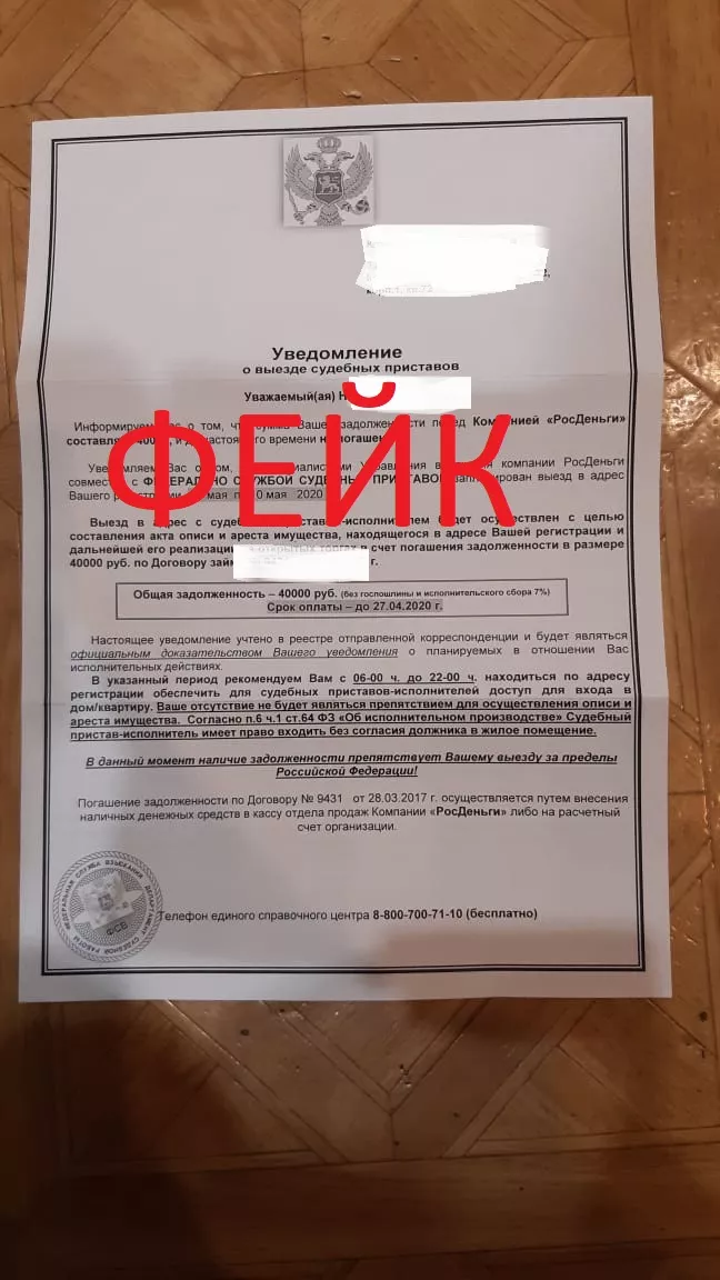 Управление службы судебных приставов 17 апреля опровергло рассылку сообщений об аресте имущества должников микрофинансовых организаций