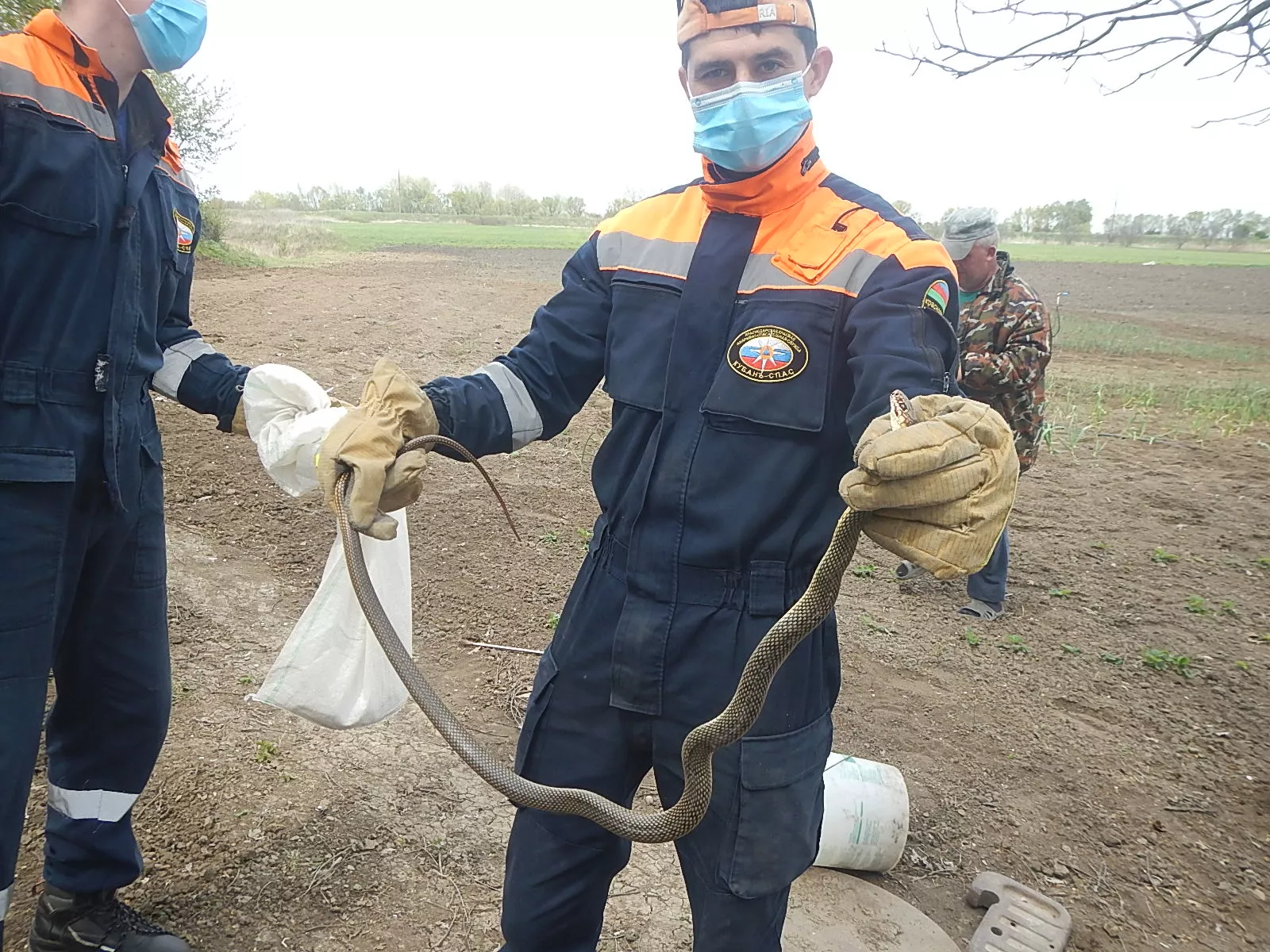 В Крымском районе змея заблокировала путь к колодцу. С самодовольным желтобрюхом разбирались спасатели