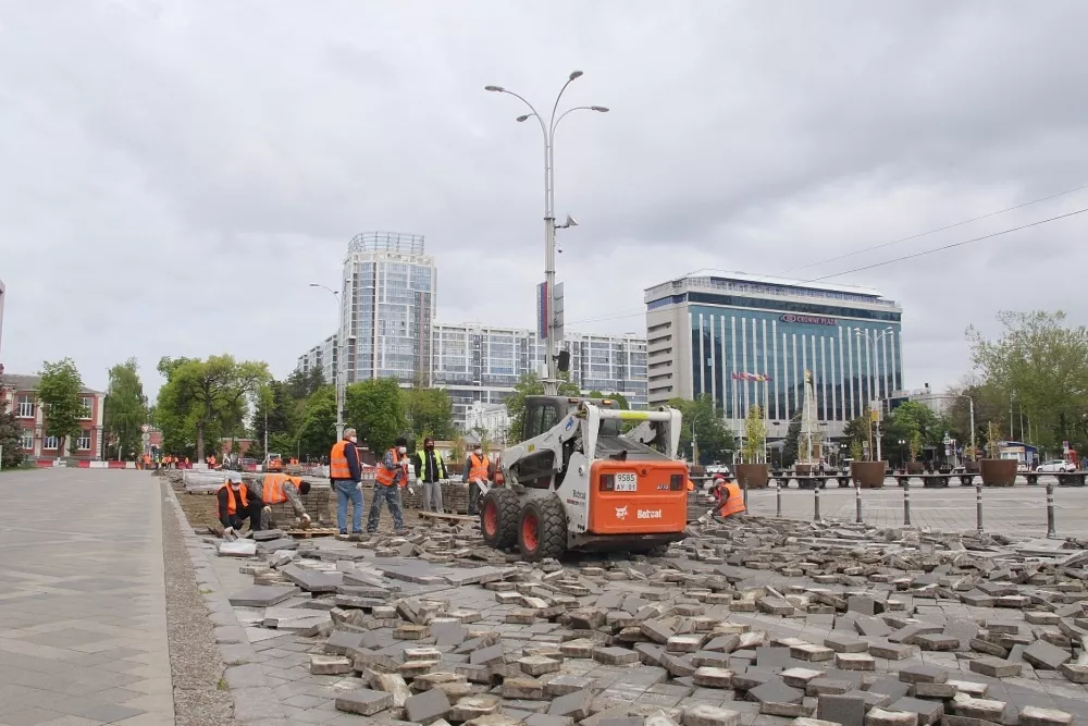 27 апреля в Краснодаре стартовали работы по замене покрытия около Главной городской площади