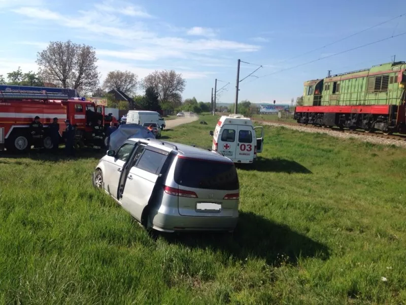Авария случилась в поселке Удобном. По данным пресс-службы Северо-Кавказской железной дороги, водитель легкового автомобиля выехал на ж/д переезд перед приближающимся локомотивом с вагоном-путеизмерителем. Отмечается, что сигнализация на переезде работала исправно.