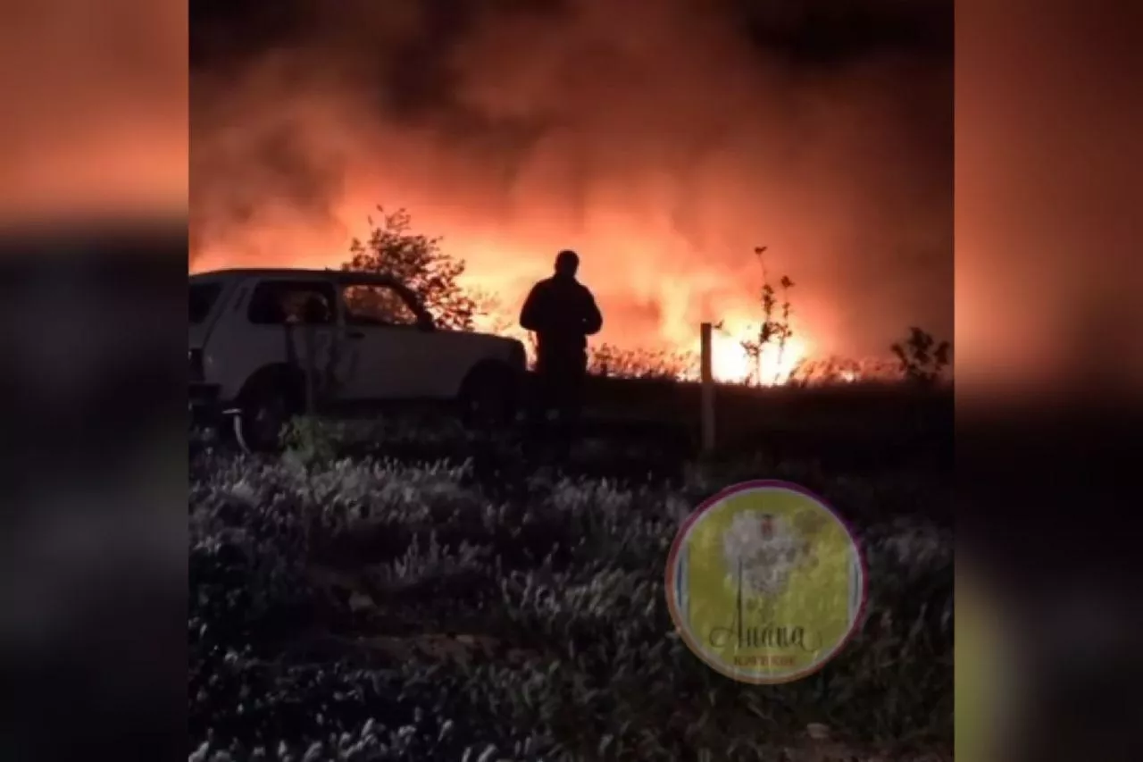 В Анапе поздно вечером 12 мая начался пожар в плавневой зоне
