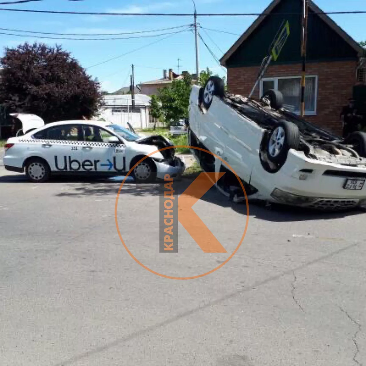 Авария случилась в 12:20. По предварительным данным, 31-летний местный житель за рулем автомобиля Nissan, который оказался машиной службы такси Uber, ехал в сторону улицы Карасунской и на пересечении с Базовской не уступил машине Toyota под управлением 38-летнего мужчины. От удара вторая иномарка перевернулась.