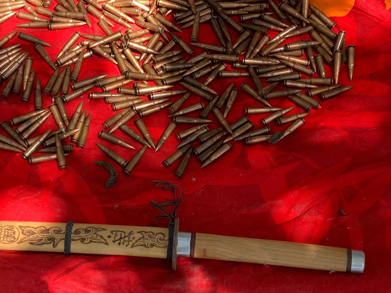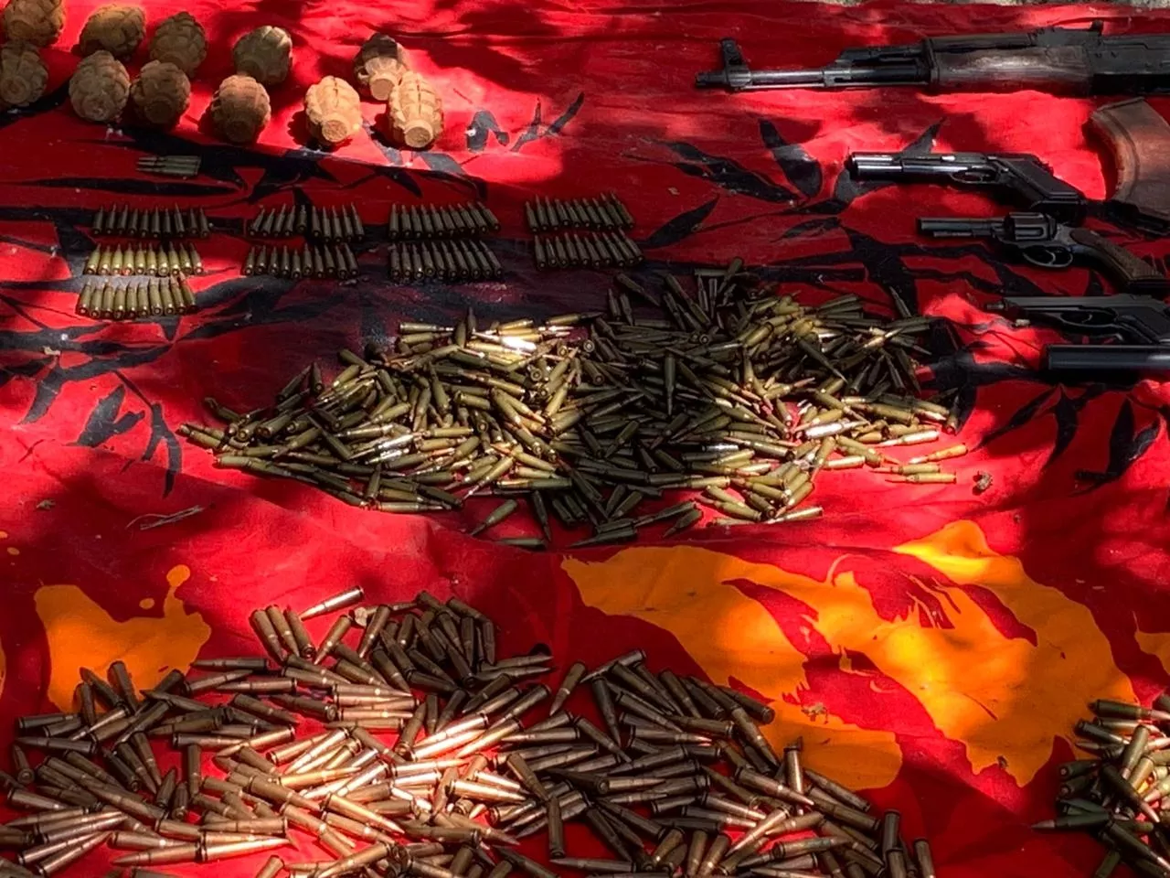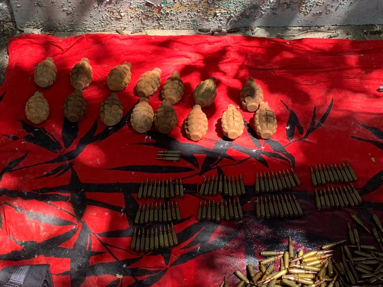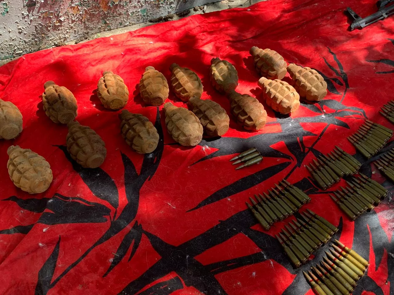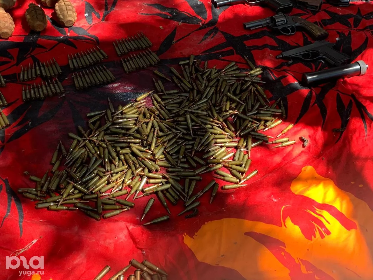 Силовики нашли в гараже подозреваемого склад боеприпасов — более 1,5 тыс. патронов, 15 гранат, автомат Калашникова и три магазина к нему, пистолет «Браунинг», револьвер, а также пистолет с глушителем. В квартире мужчины обнаружили документы, имеющие доказательное значение по делу о мошенничестве, в котором фигурирует его отец.