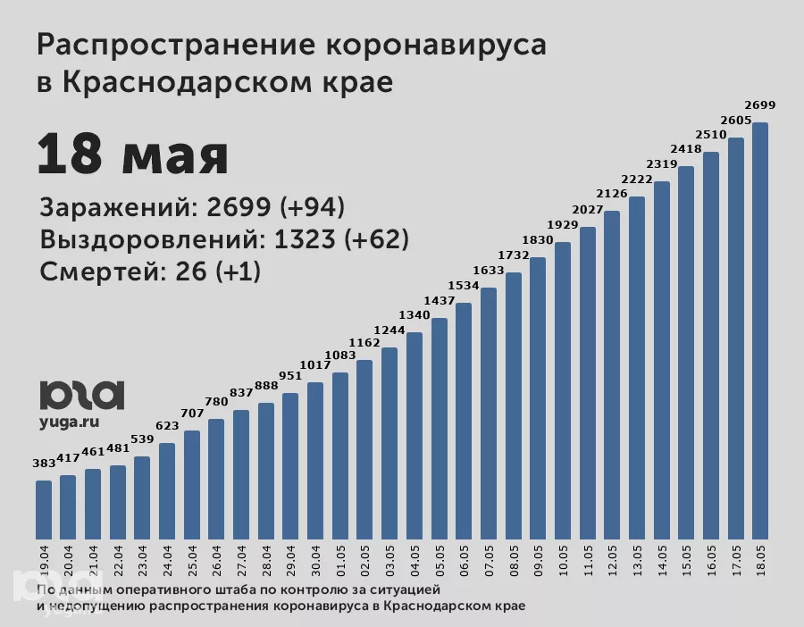 Оперштаб Кубани 18 мая сообщил о 94 новых заболевших коронавирусом в регионе