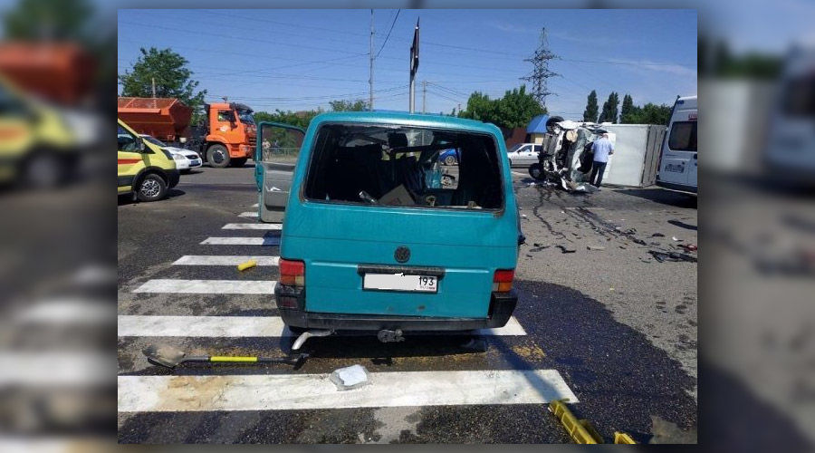 Авария случилась на трассе М4 «Дон» на подъезде к Краснодару. По предварительным данным, 39-летний водитель автомобиля Volkswagen Transporter на регулируем перекрестке на улице Ягодина повернул налево на красный сигнал светофора и врезался в машину ГАЗ, которая от удара перевернулась.