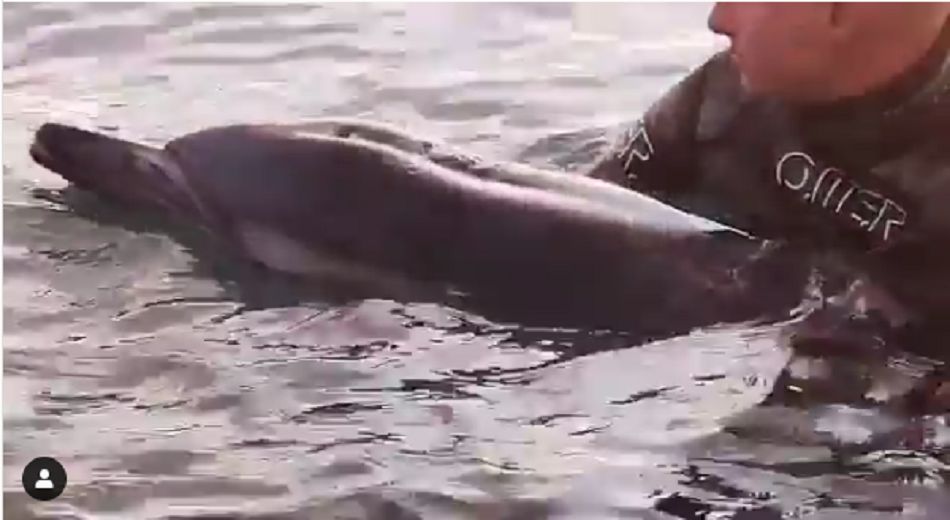 В Сочи вечером 1 июня умирающий дельфин приплыл к людям за помощью