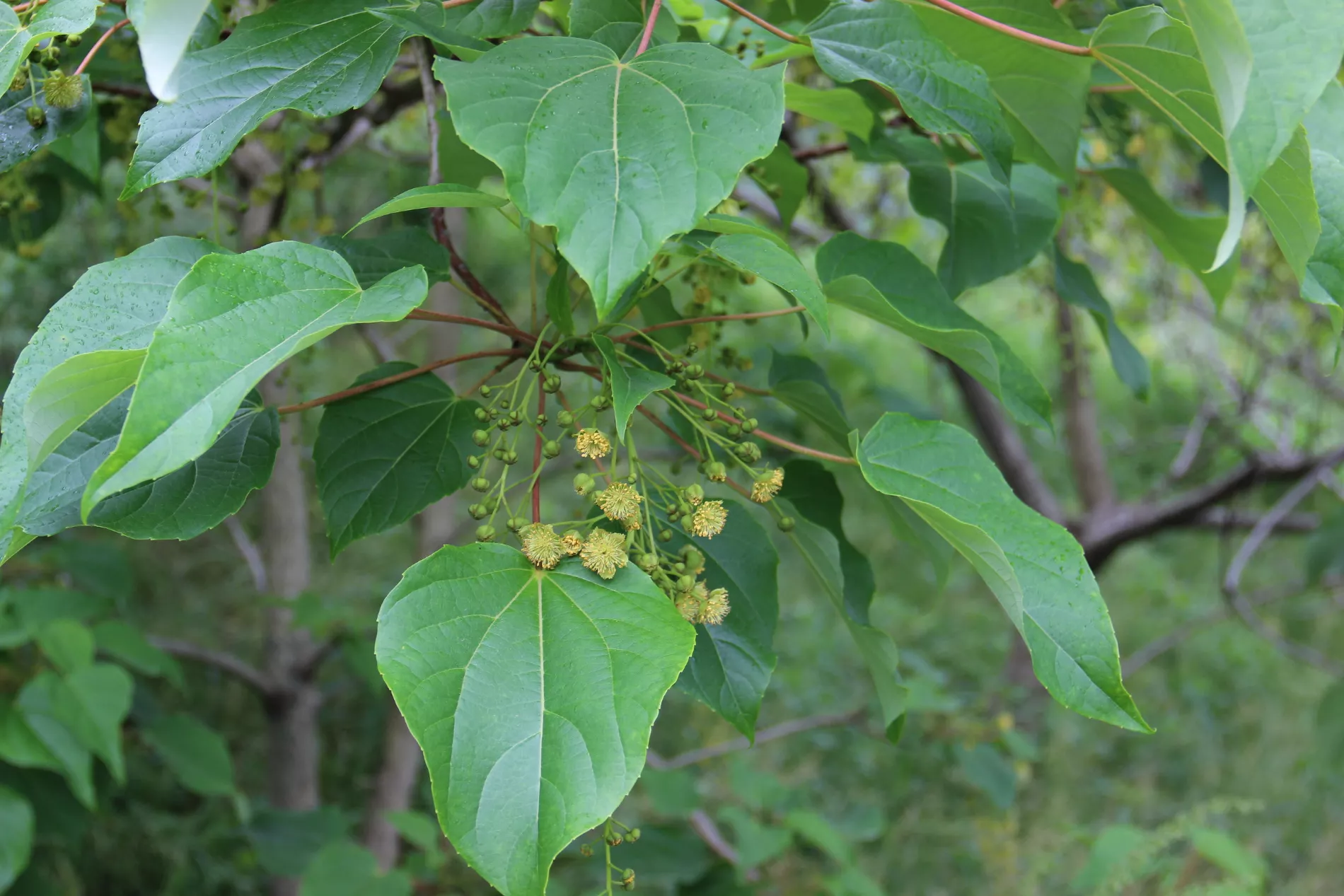 В заповеднике цветет сейчас также идезия многоплодная, известная как «ландышевое» дерево. Такое название она получила из-за сходства запаха цветков с нежным ароматом весеннего цветка.