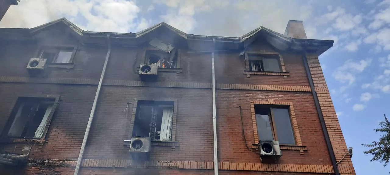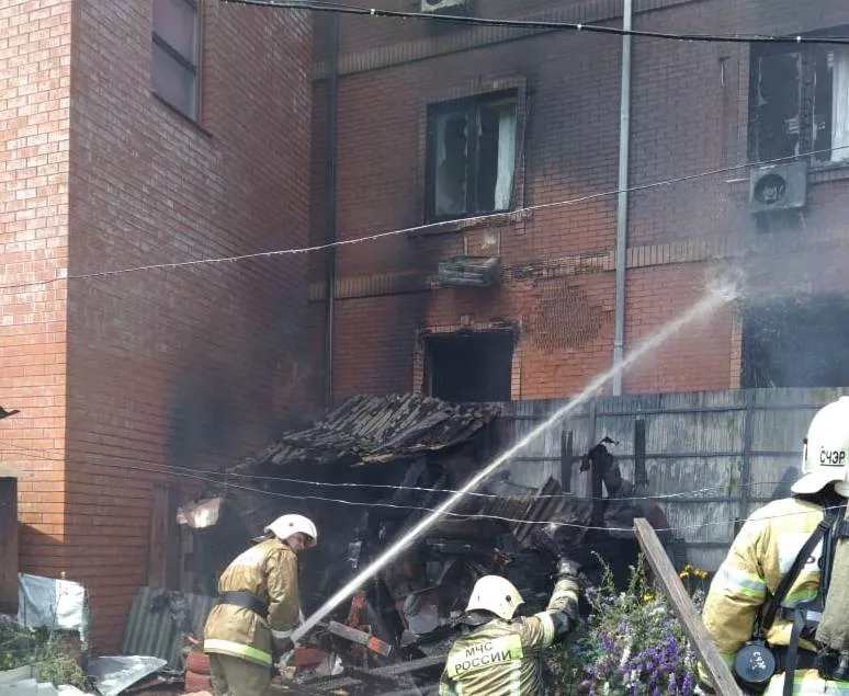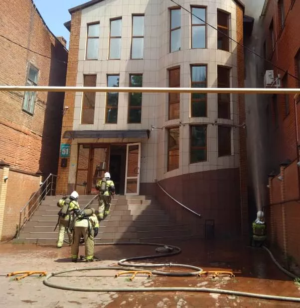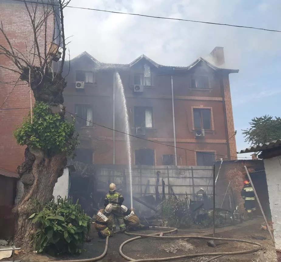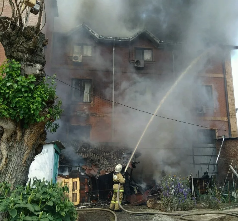 Сообщение о возгорании в здании на улице Карасунской недалеко от Октябрьской поступило в 10:20. Прибывшие на место спасатели установили, что загорелась хозпостройка, пламя перекинулось на кровлю трехэтажного здания и распространилось на площади 160 кв. метров.