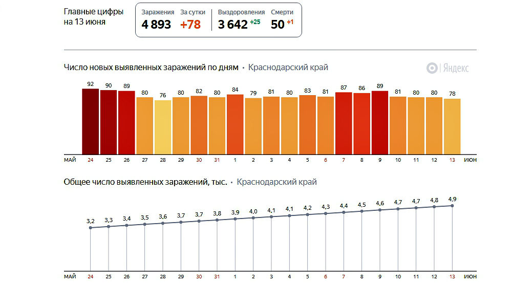 Коронавирус на 13 июня диагностировали у 78 жителей Краснодарского края