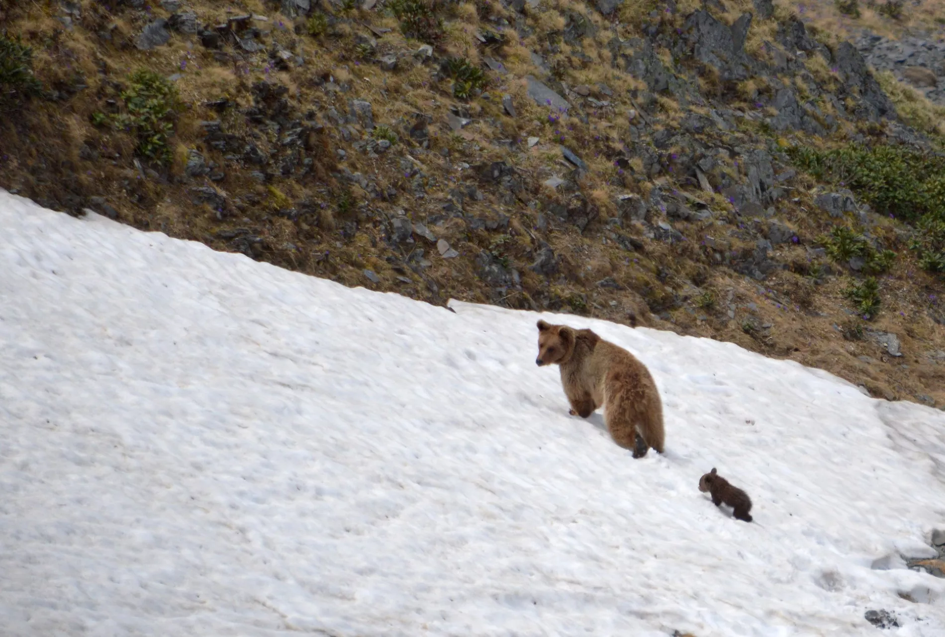 Как правило, в этот период у медведей на Кавказе происходит гон: это значит, что они находятся в альпийской зоне и при хорошей ясной погоде могут быть легко визуально учтены.