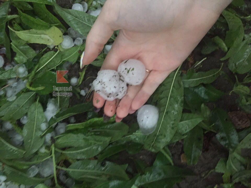 В некоторых районах города вместе с ливнем прошел град. Последствия непогоды местные жители зафиксировали под Горячим Ключом и в Усть-Лабинске.