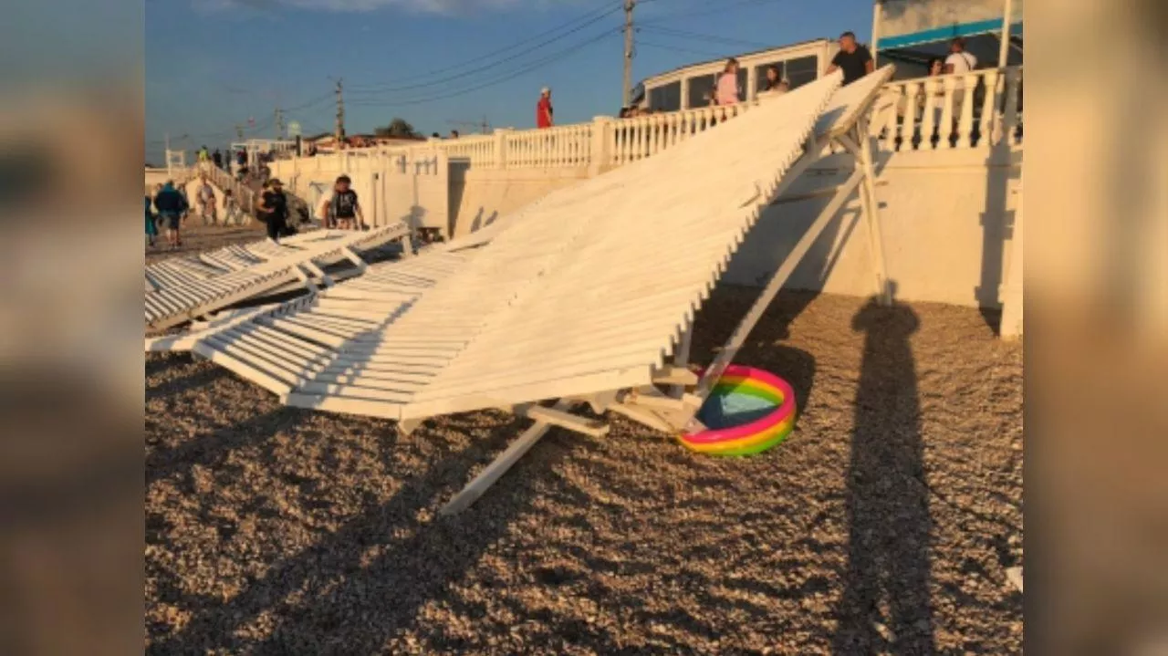Навес рухнул на пляже парка Победы вечером 16 июня. Информация об этом появилась в местных соцсетях.