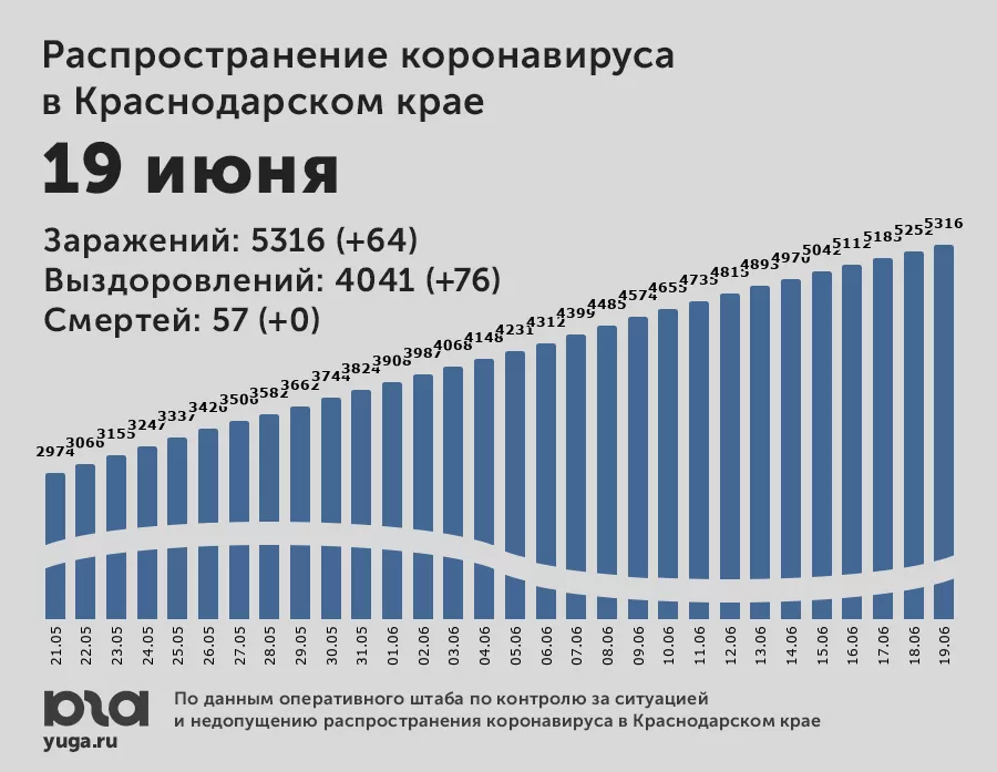 В Краснодарском крае к 19 июня зафиксировали 5 тыс. 316 случаев инфицирования COVID-19