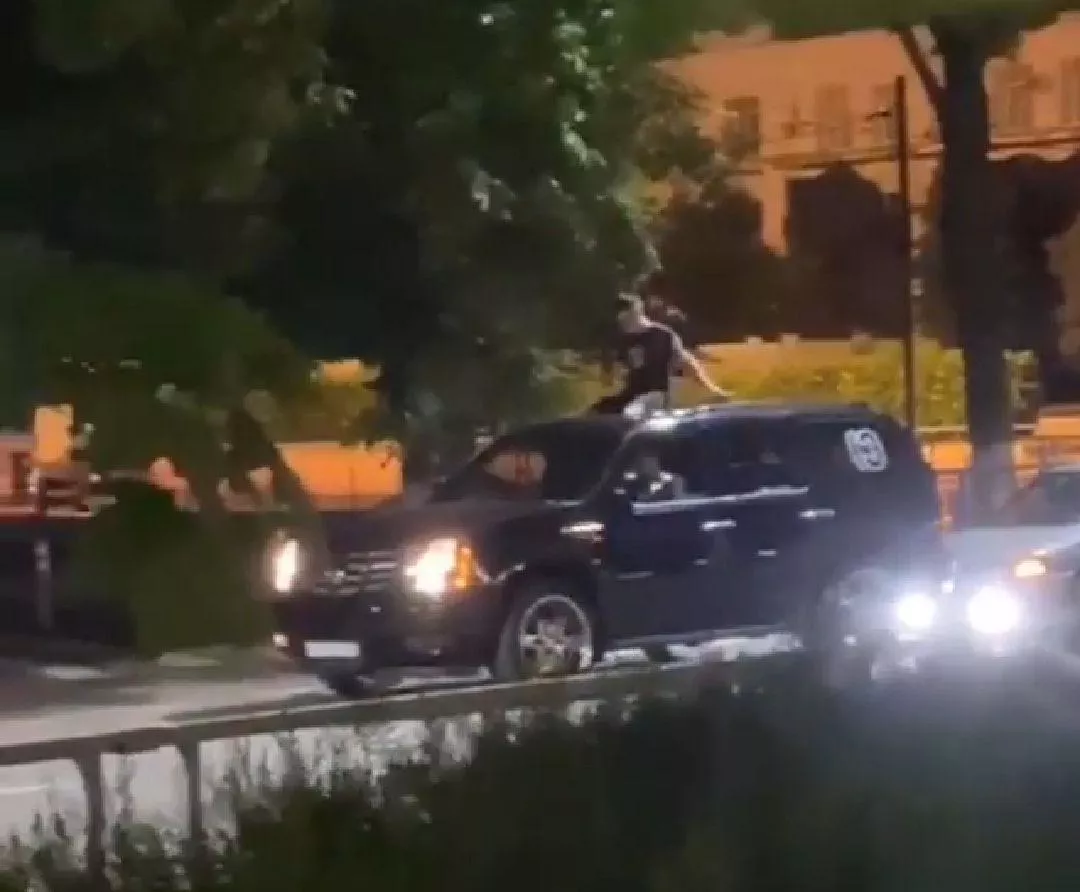 В центре Краснодара 19-летний водитель Cadillac прокатил на крыше пассажира, его оштрафовали