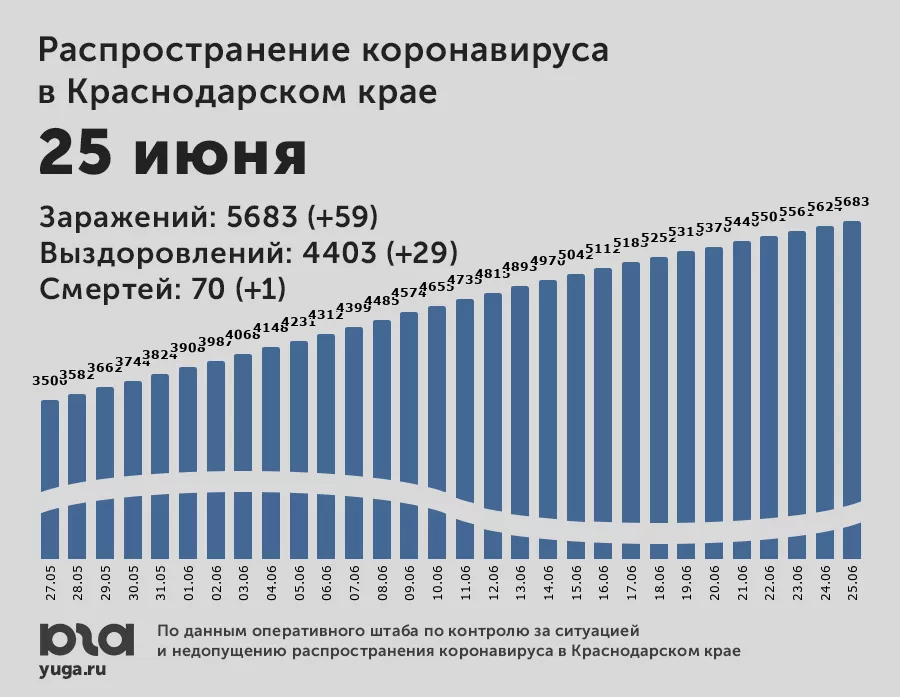 В Краснодарском крае к 25 июня зафиксировали 5 тыс. 683 человека с COVID-19