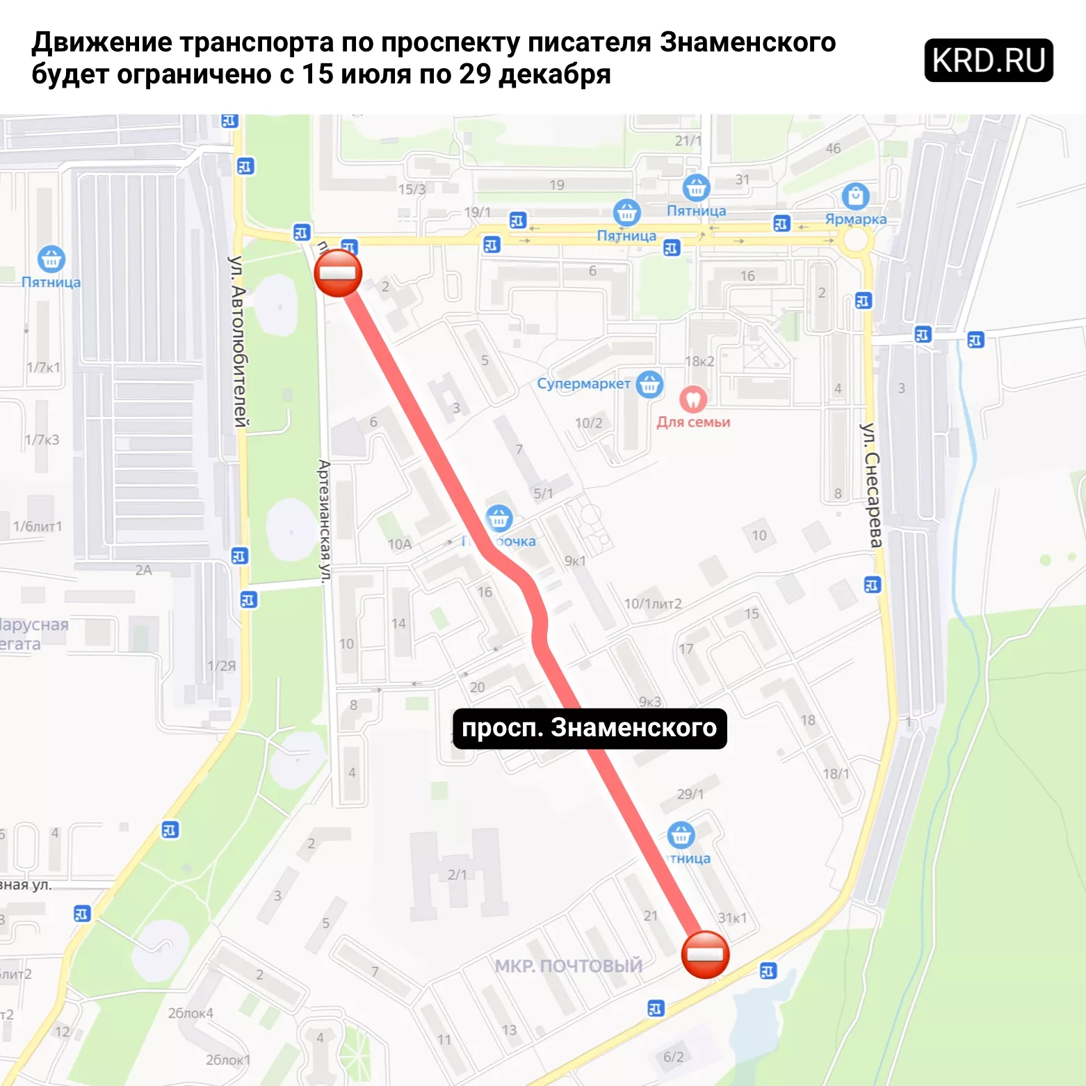 В Краснодаре до конца 2020 года ограничат движение по проспекту им. Писателя Знаменского