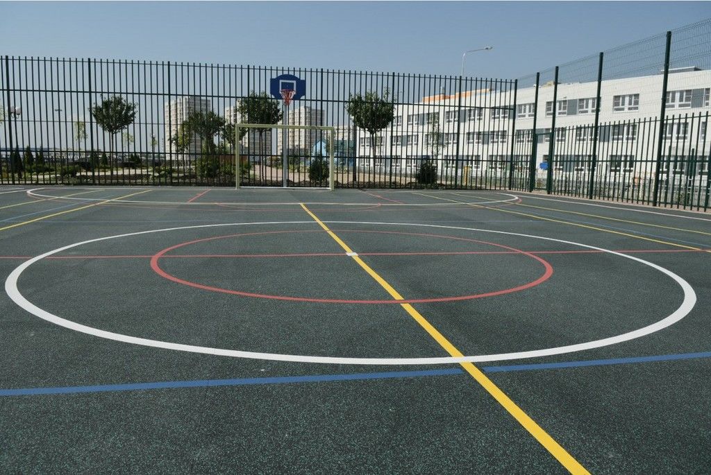 Территория площадки — 20 на 28 метров, она огорожена сетчатым забором высотой 5 метров. Там уже сделали освещение и положили прорезиненное покрытие. Для учащихся расположенной рядом школы сделали специальный проход и калитку.