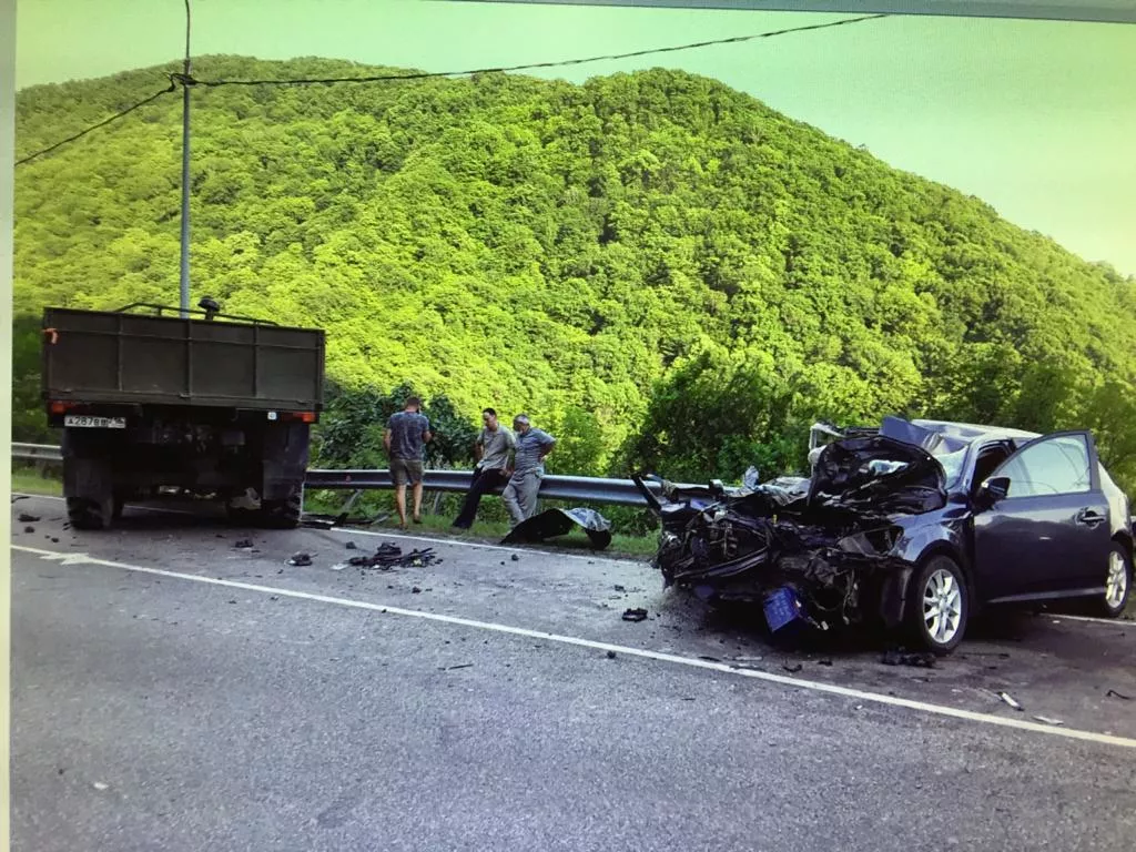 ДТП случилось 5 июля в 18:30 на трассе А-147 Джубга — Сочи. По предварительным данным, водитель Kia Ceed ехал из Сочи в сторону Туапсе, вылетел на встречную полосу и столкнулся с КамАЗом. Грузовик после аварии отбросило на металлический отбойник.