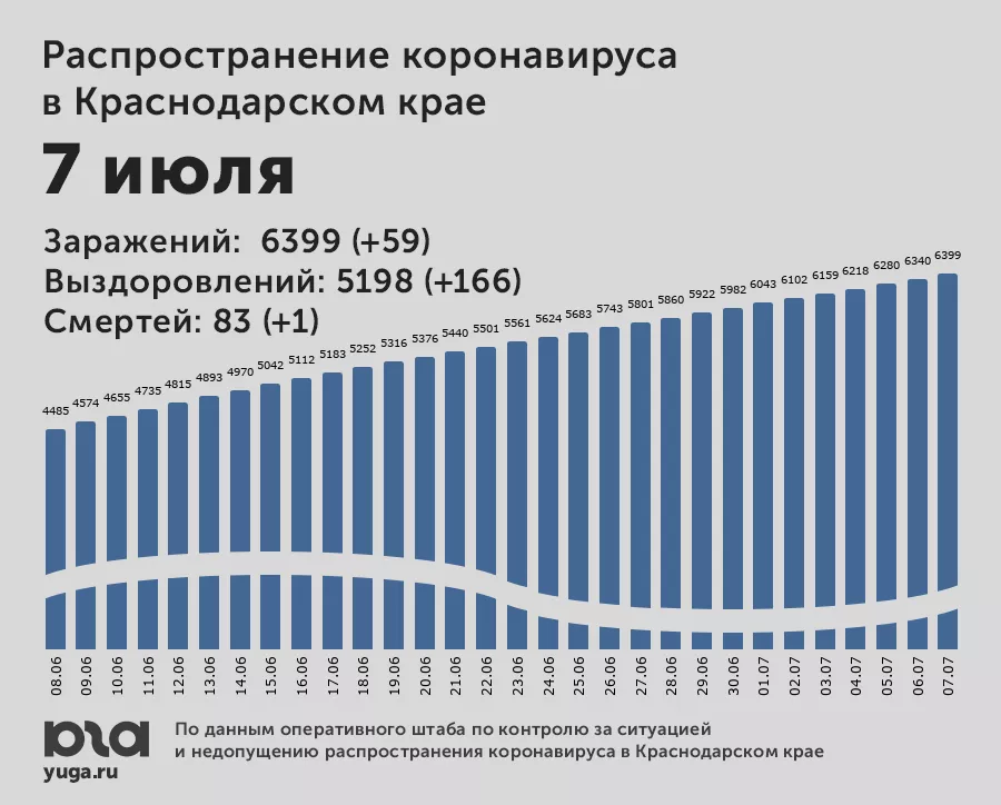 В Краснодарском крае к 7 июля число инфицированных достигло 6 тыс. 399 человек
