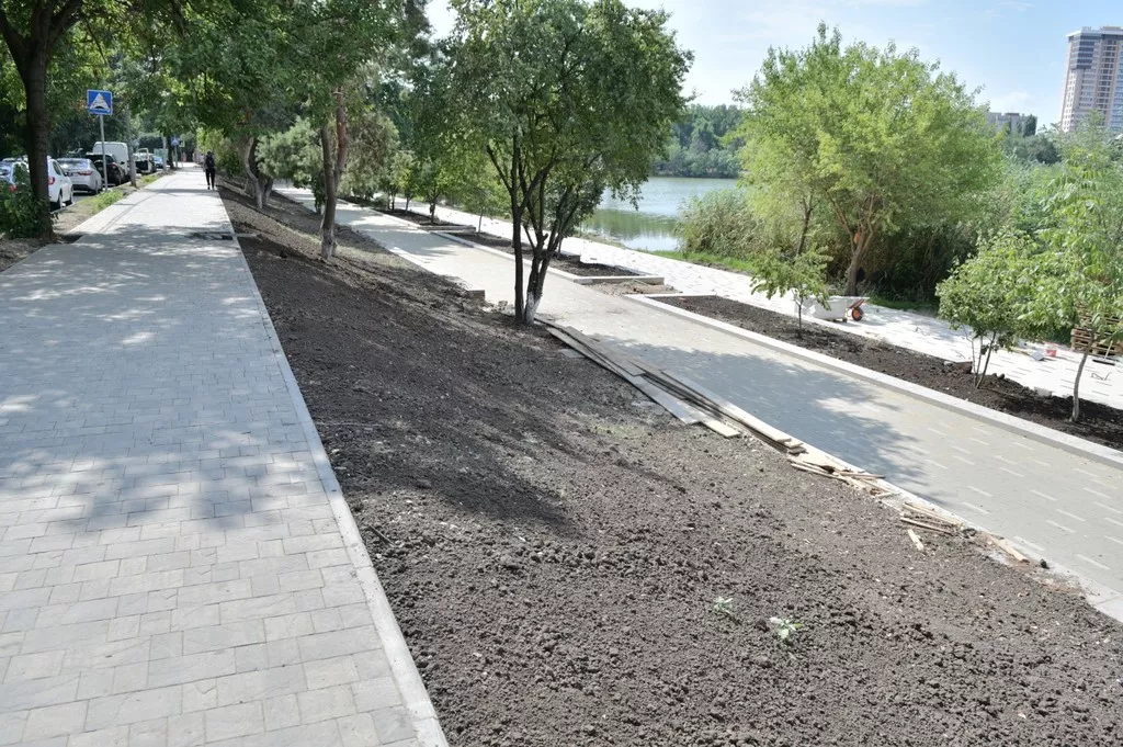 Зеленую зону площаью 1,7 га вдоль Карасунской Набережной от Садовой до стадиона «Кубань» начали благоустраивать в апреле этого года. Завершить работы планируют в августе.