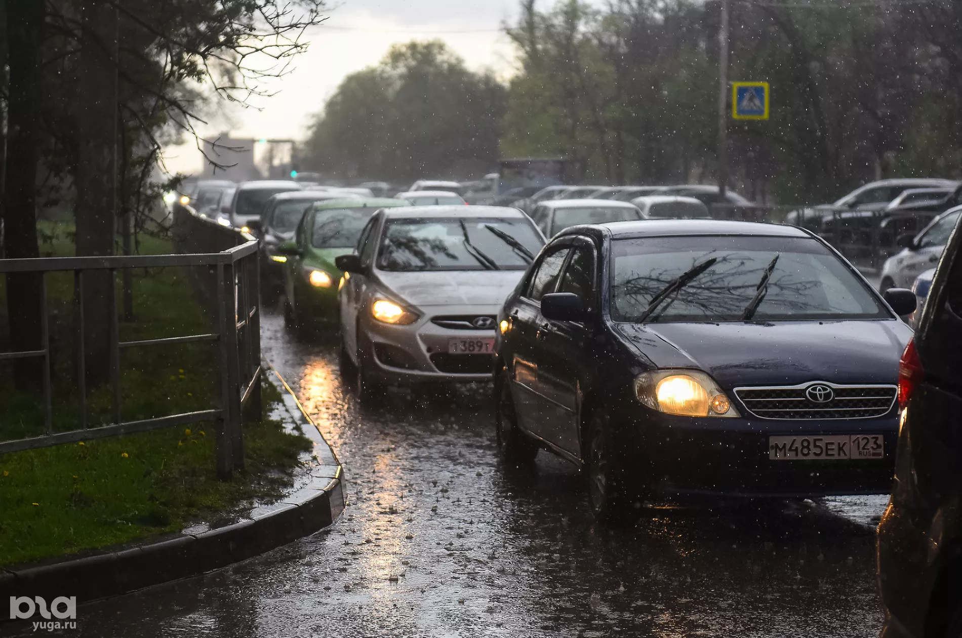 В Краснодаре днем 8 июля прошел ливень, после чего машины встали в пробках из-за подтоплений